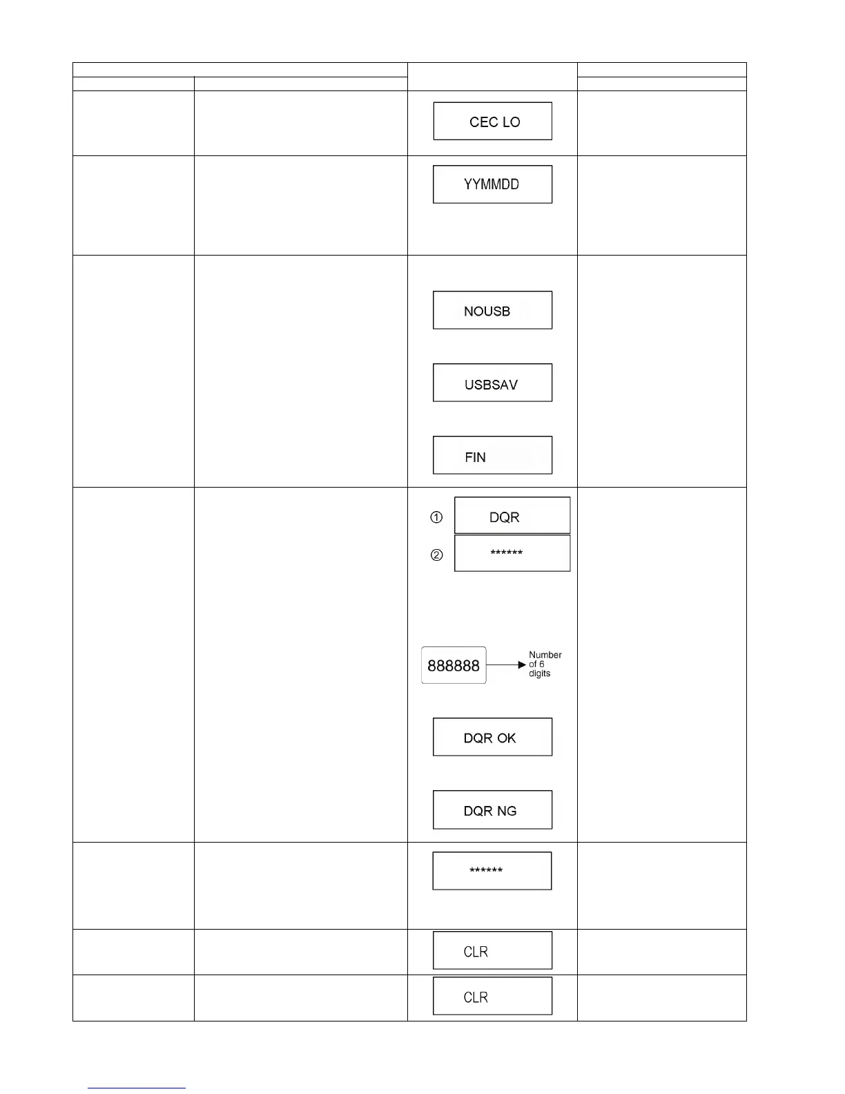 CEC (L) Output The CEC terminal low output of HDMI. Press [5] [6] in service mode.