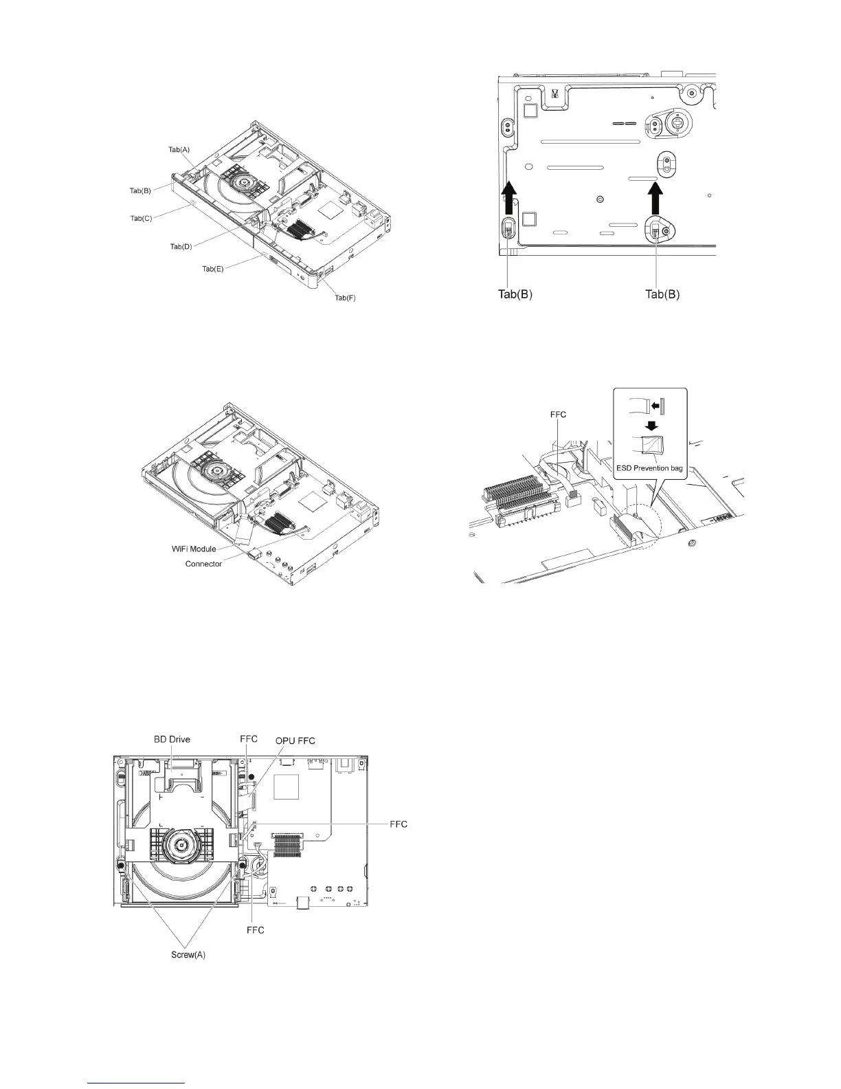 3. Remove the 2 Screws (A ), remove 2 tabs (B) of BD Drive