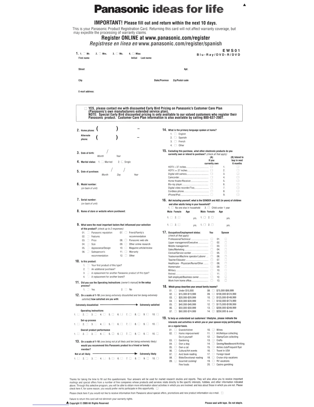 Panasonic DMP-BDT215 - Product Registration; Registration Benefits and Information