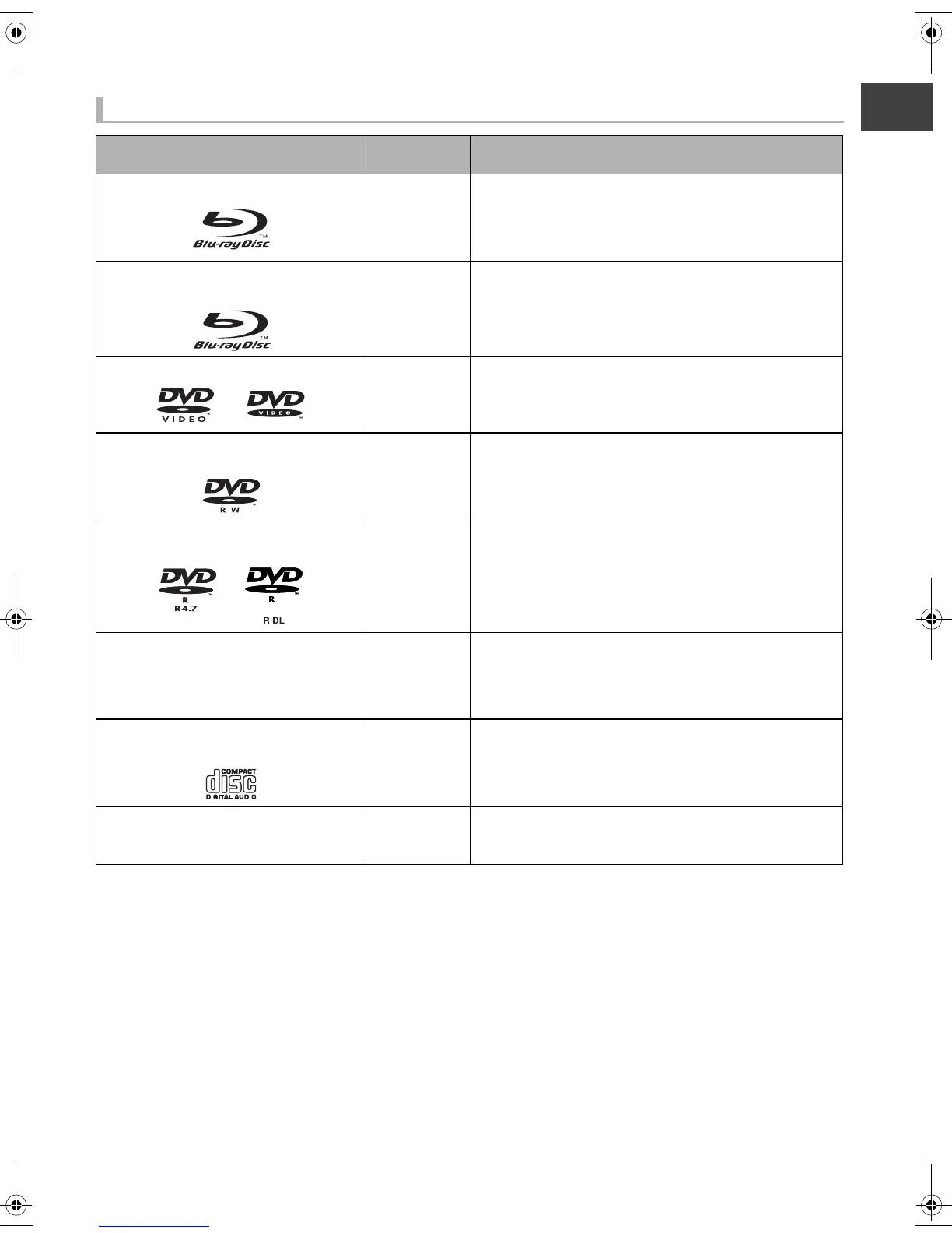 BD-RE, BD-R, DVD-RAM, DVD-R,