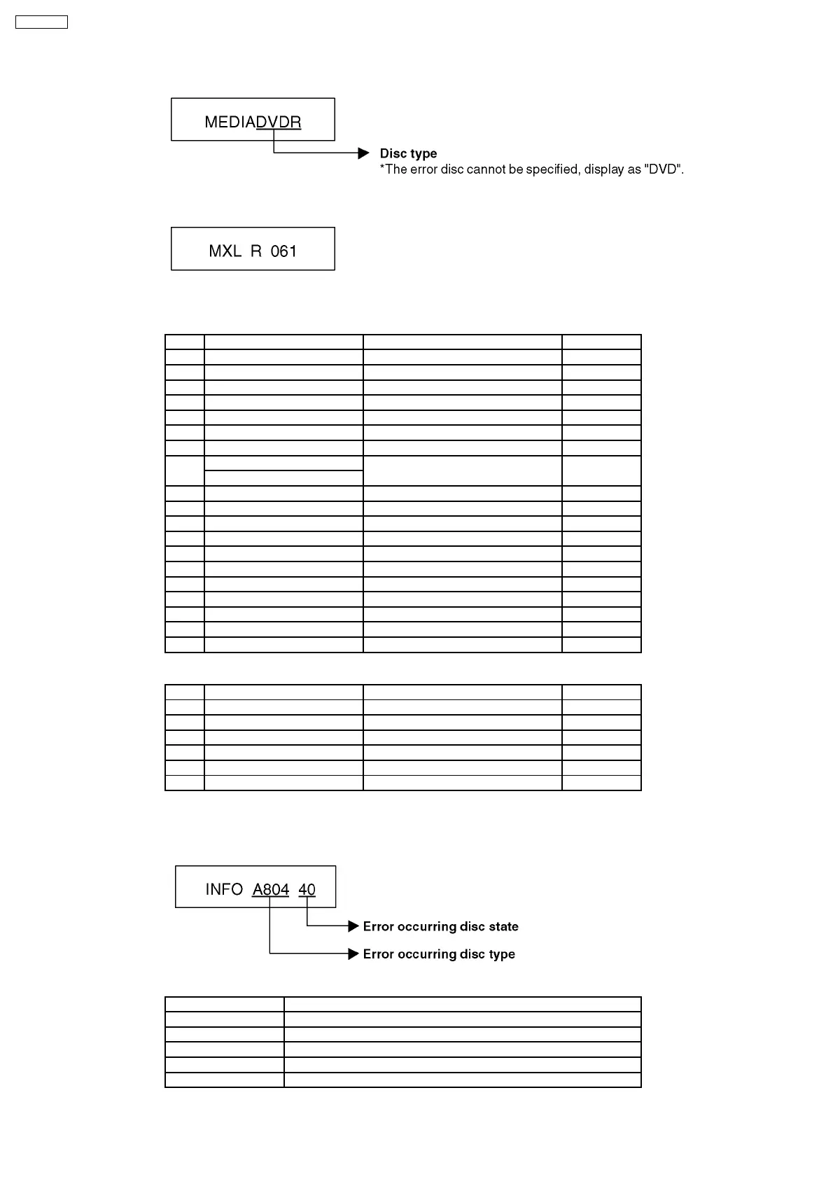 (5) Error occurring Disc type is displayed for 5 seconds.