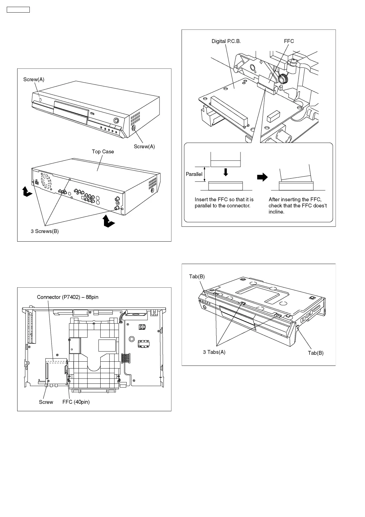 1. Remove 3 tabs (A) and 2 tabs (B) in this order. (The tab (A)
