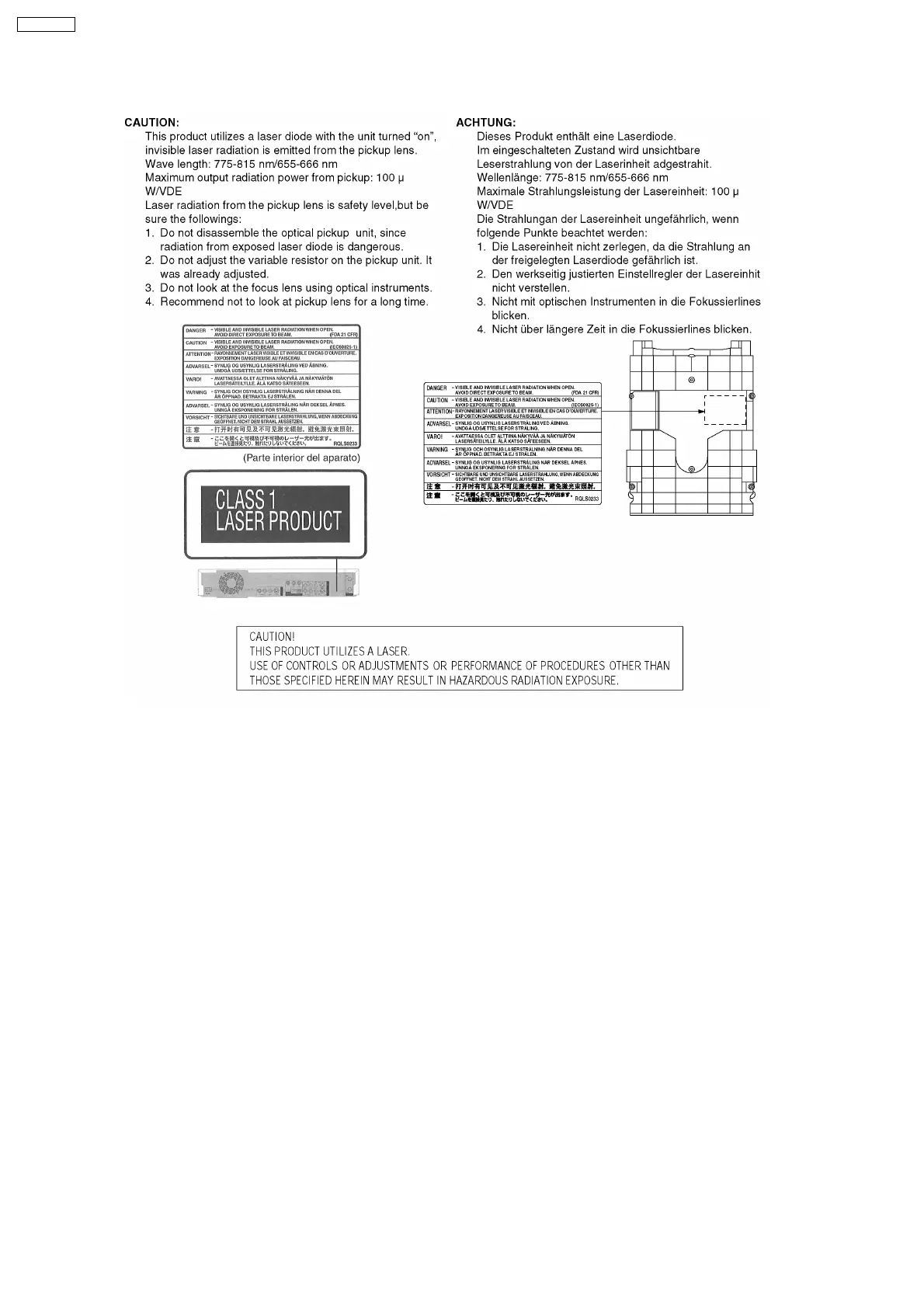 Panasonic DMR-E55PL - 3 Precaution of Laser Diode