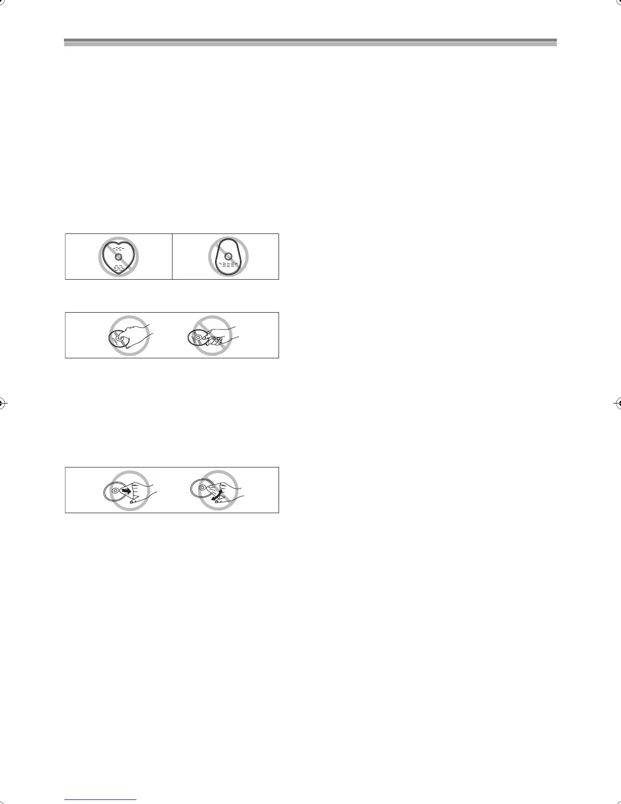 ≥Do not attach labels or stickers to discs. (Do not use discs with exposed adhesive from tape or left over peeled-off stickers.)