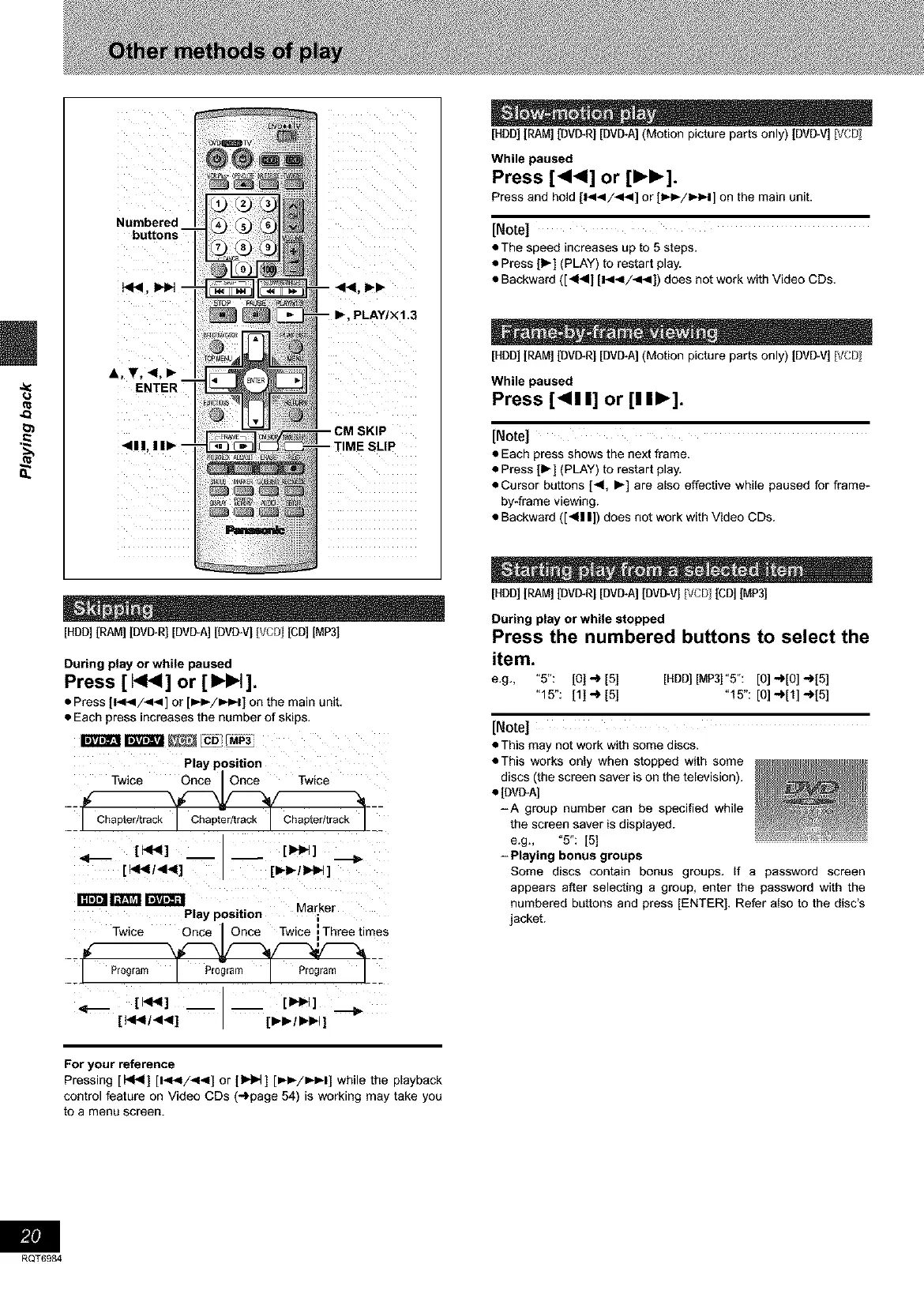 • Cursor buttons [<, I_] are also effective while paused for frame-