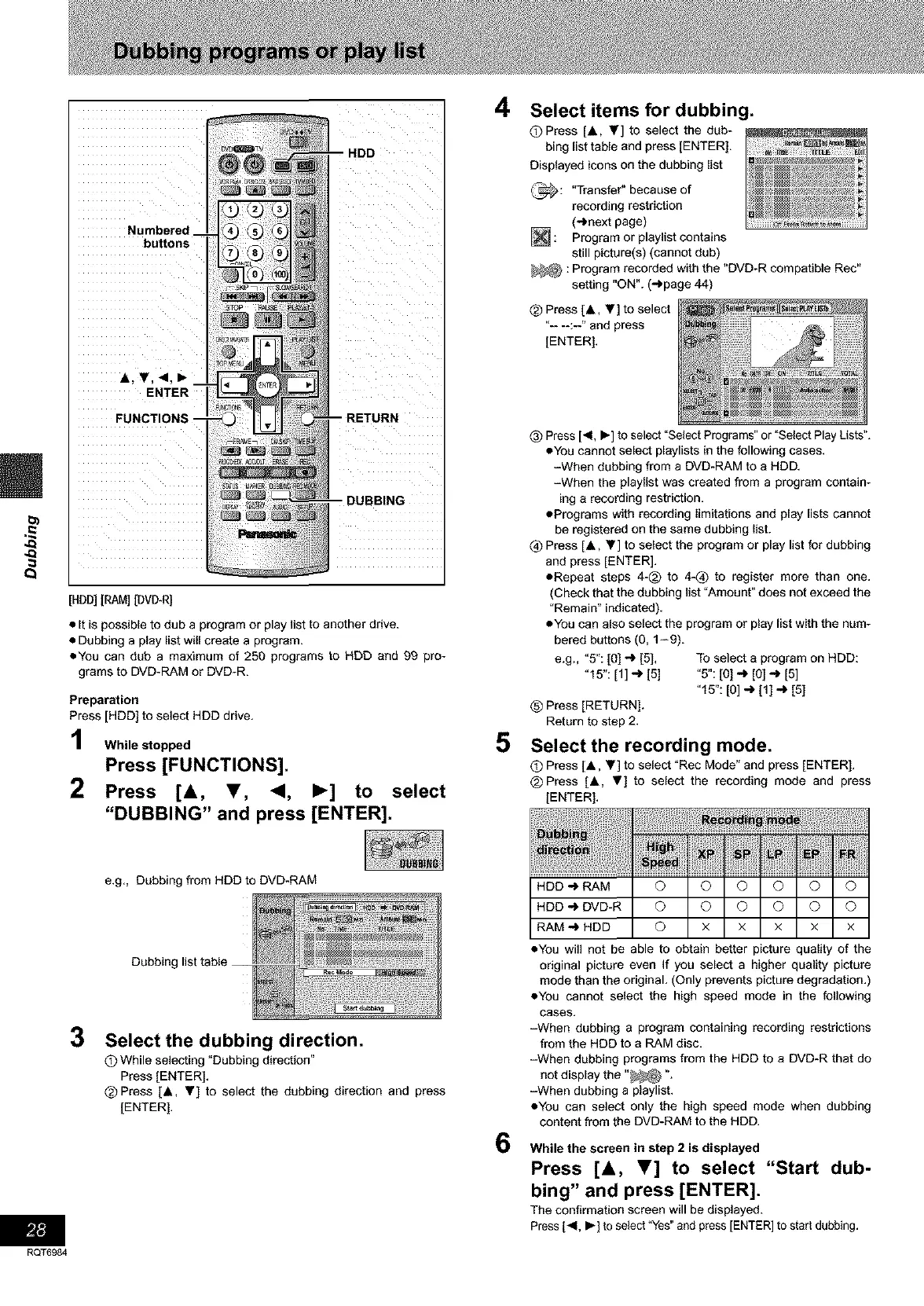 • You can dub a maximum of 250 programs to HDD and 99 pro-