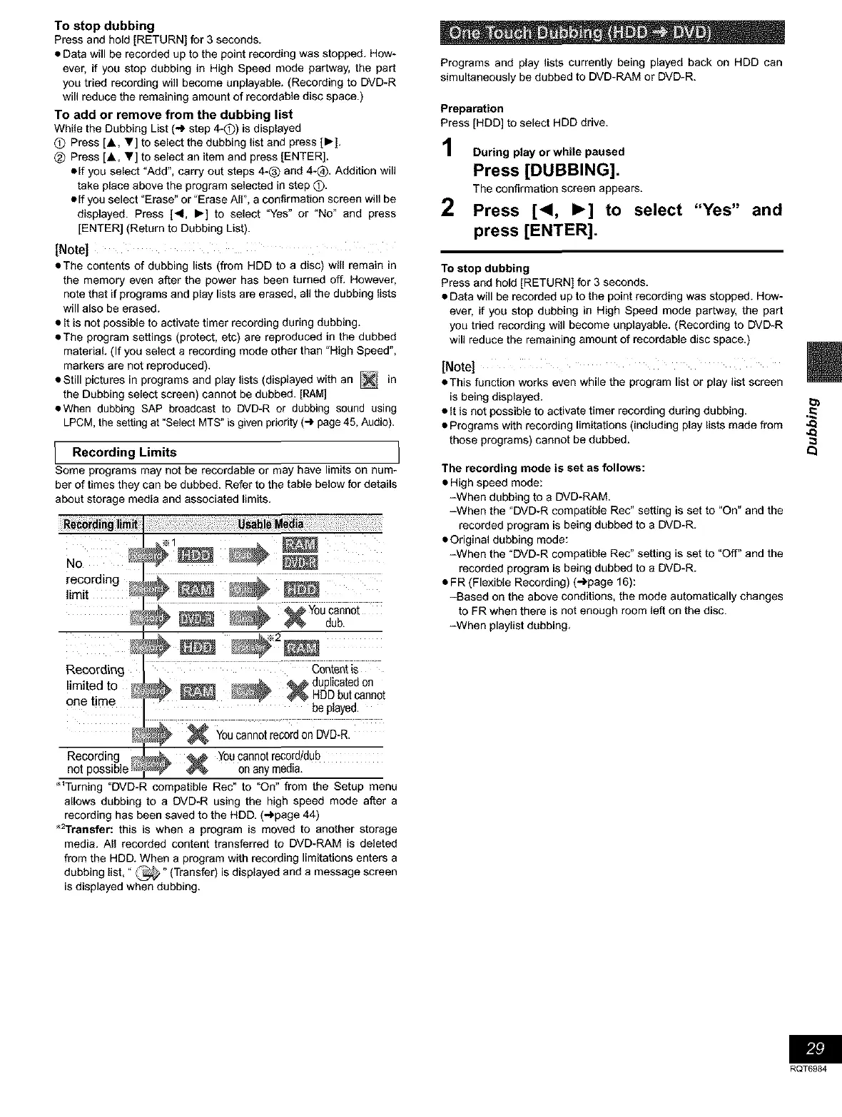 simultaneously be dubbed to DVD-RAM or DVD-R.
