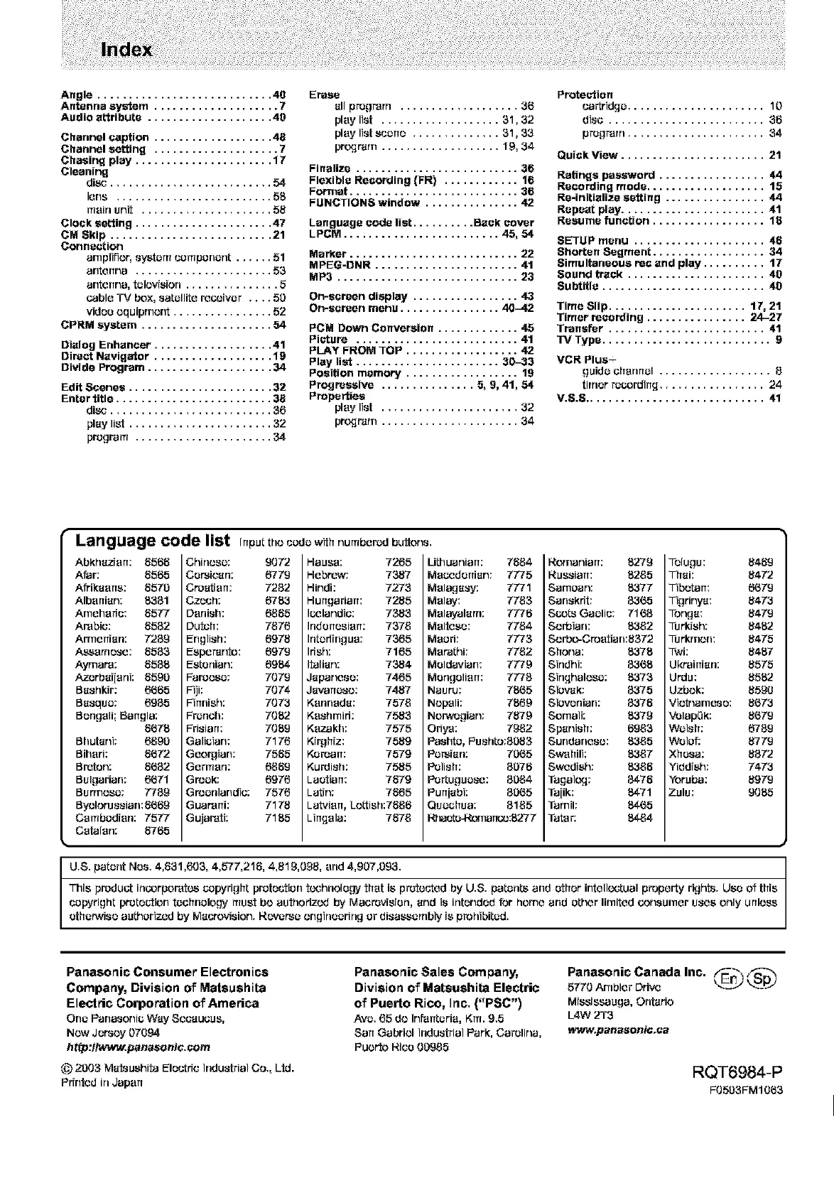 Language code list .......... Back cover
