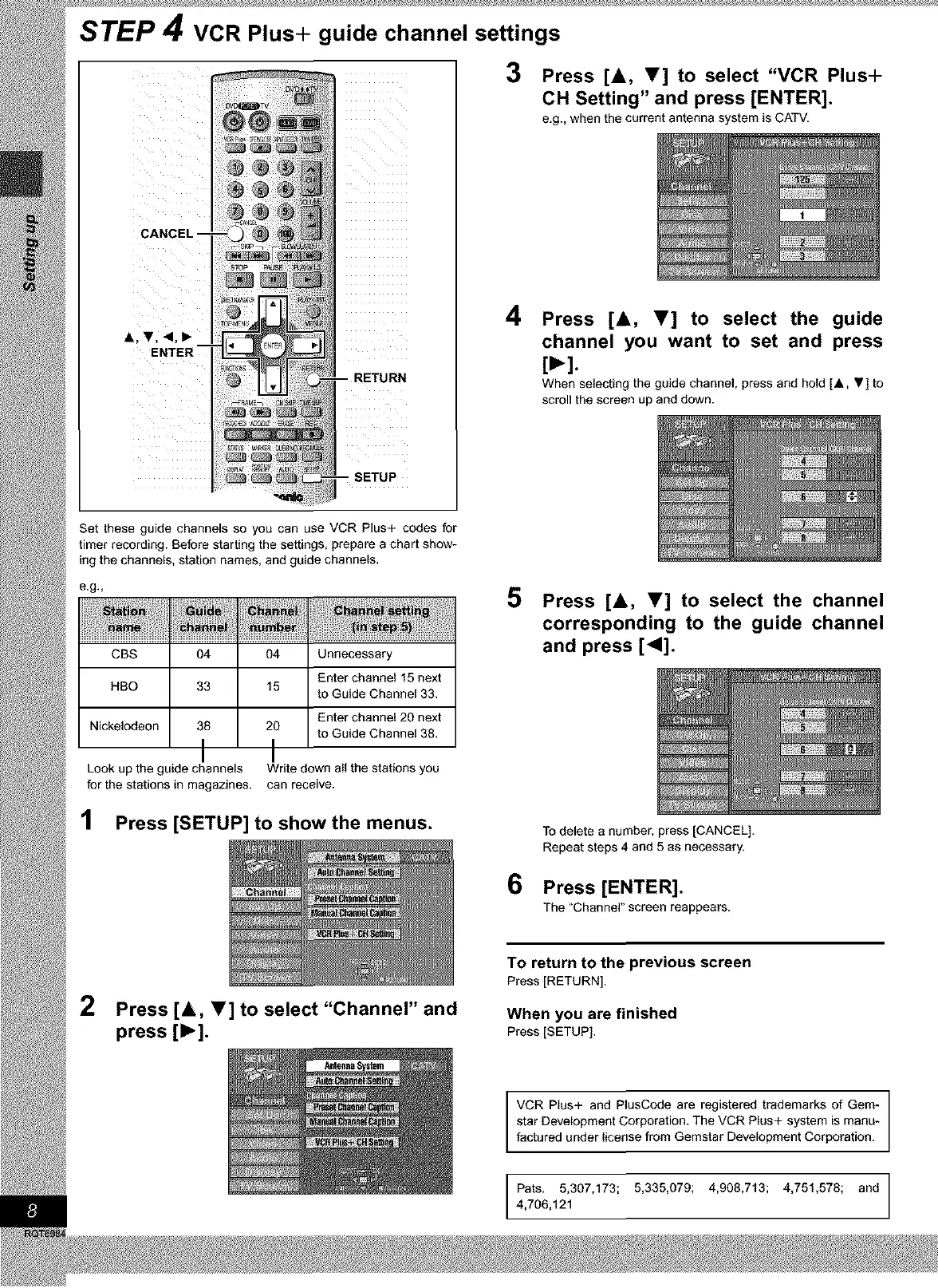 STEP 4 VCR Plus+ guide channel settings