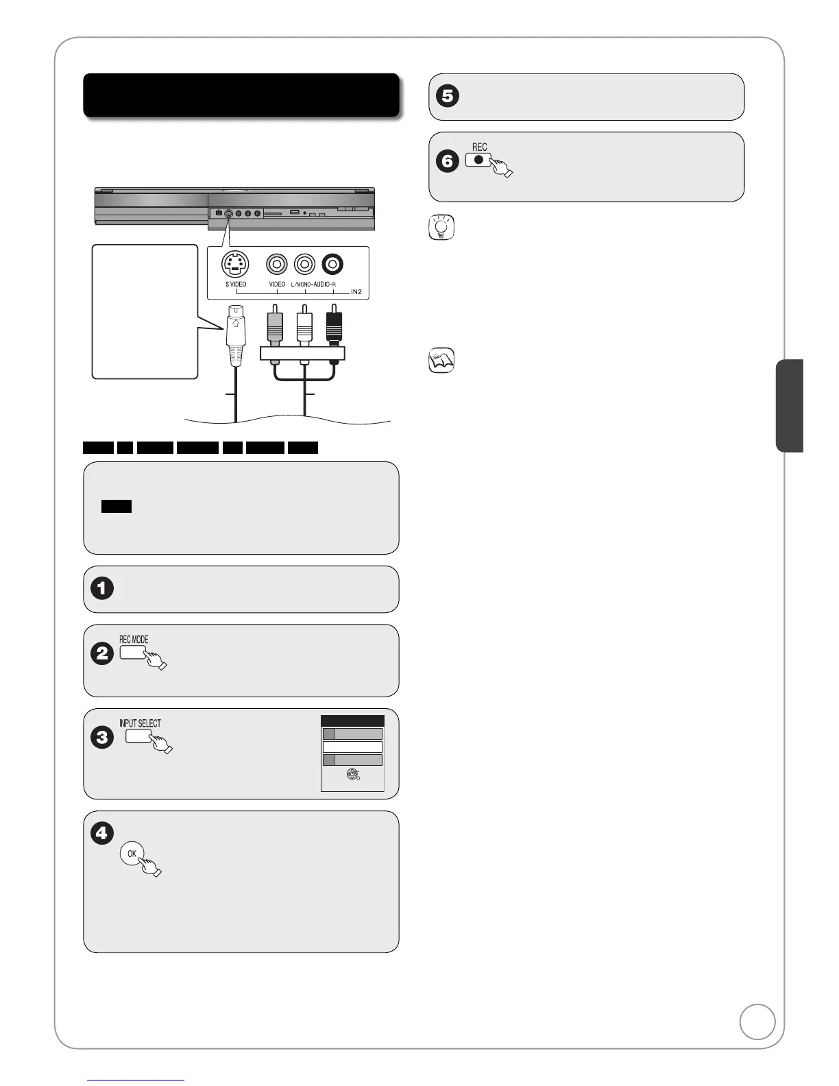 Recording from a VCR or a Set top box