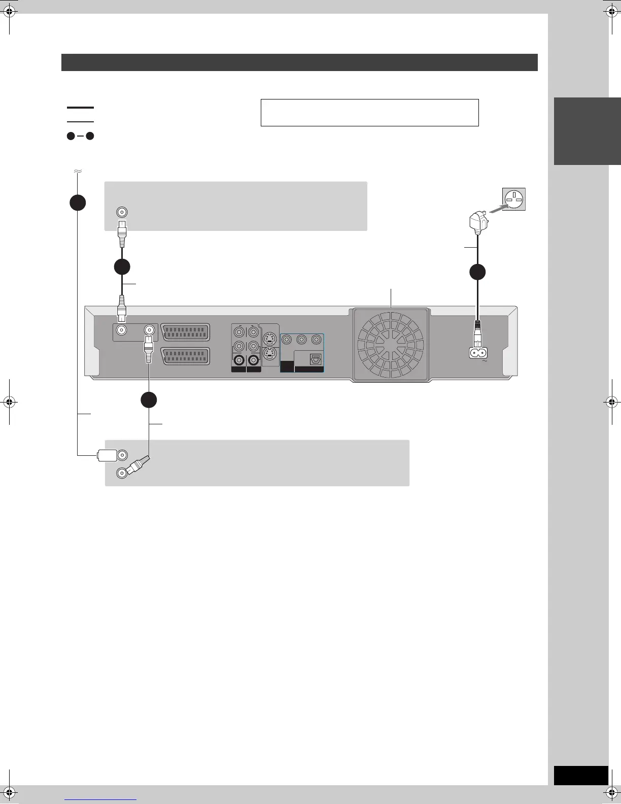 Connect in the numbered order. If you do not have a Satellite/Digital terrestrial receiver, connect the aerial to RF IN socket of this unit and skip