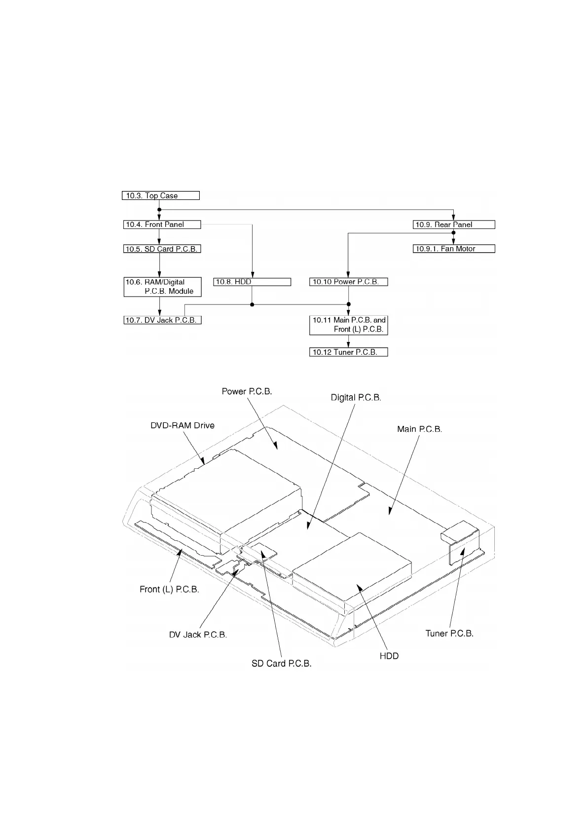 The following chart is the procedure for disassembling the casing and inside parts for internal