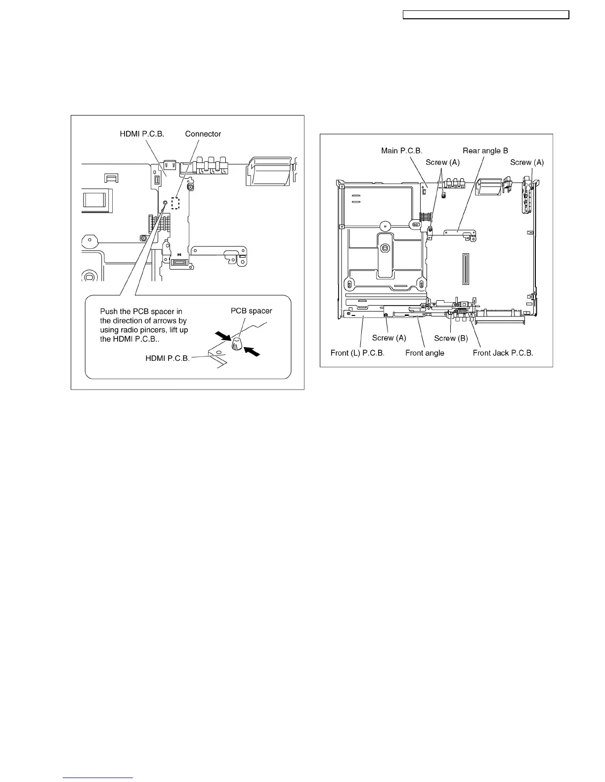 3. Remove Main P.C.B., Front jack P.C.B. and Front (L)