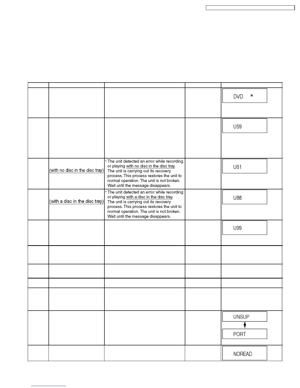 Error Code Diagnosis contents Description Monitor Display Automatic FL display