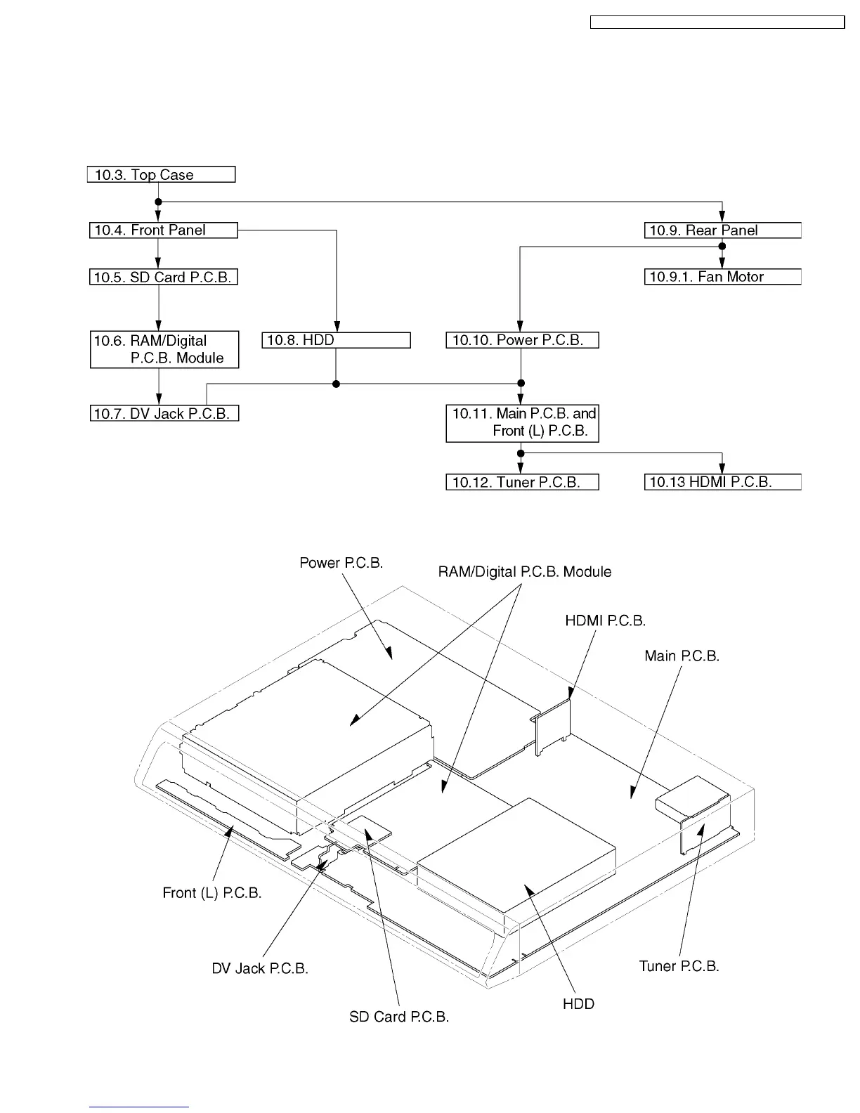 The following chart is the procedure for disassembling the casing and inside parts for internal inspection when carrying out the