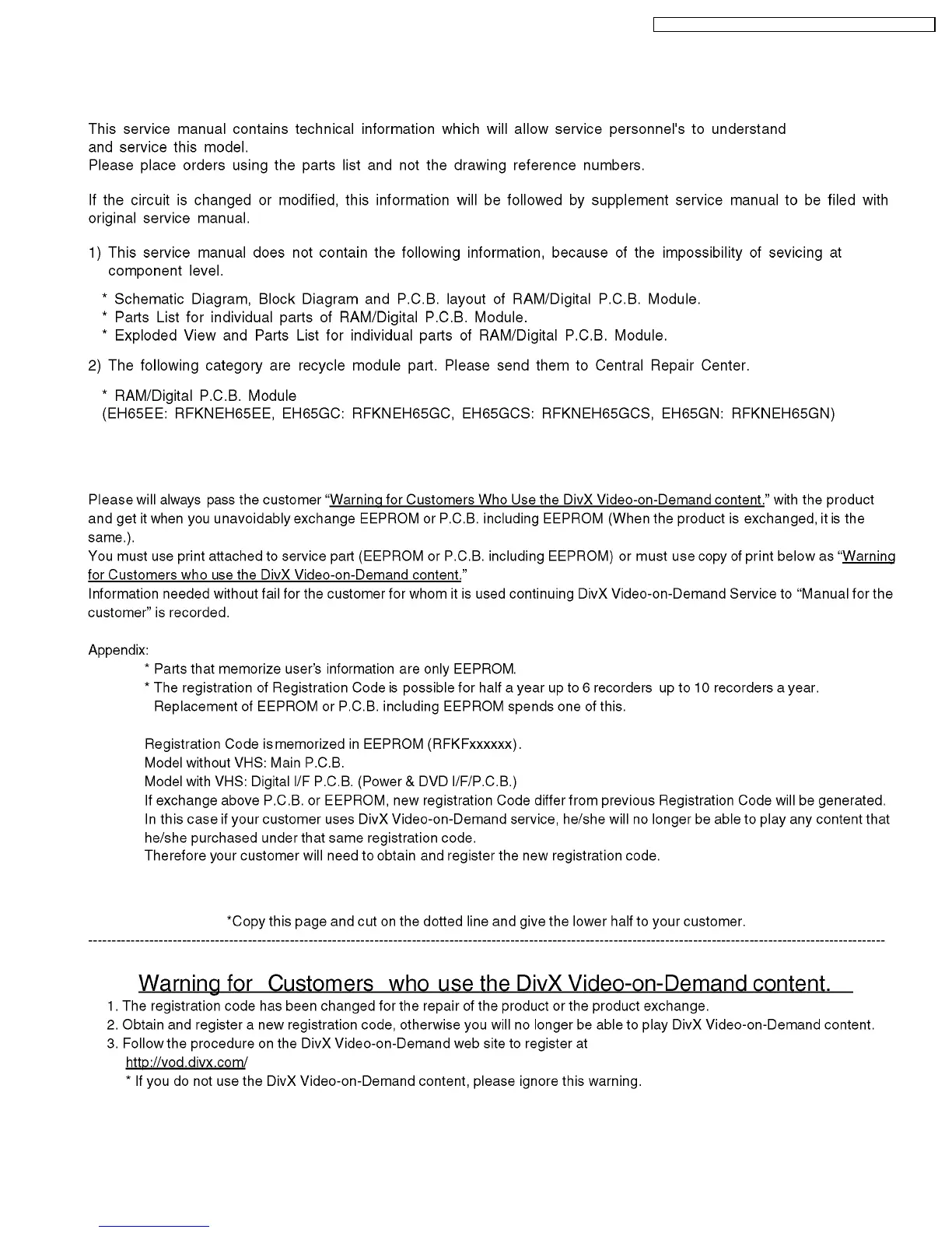 DMR-EH65EE / DMR-EH65GC / DMR-EH65GCS / DMR-EH65GN