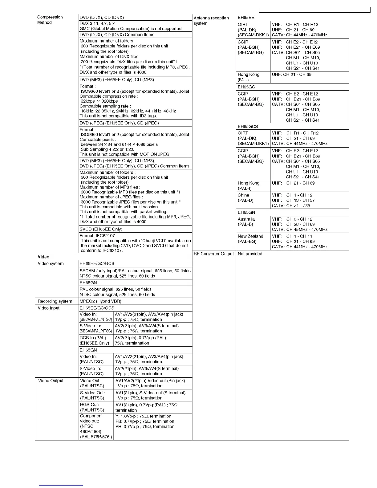 DMR-EH65EE / DMR-EH65GC / DMR-EH65GCS / DMR-EH65GN
