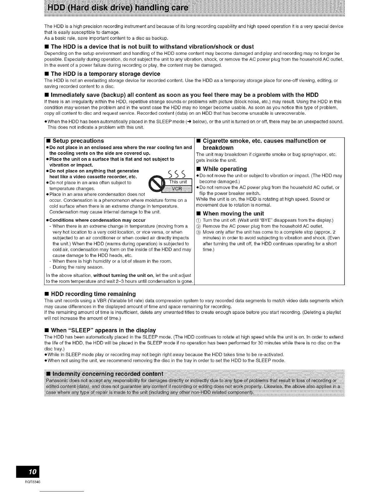 Depending on the setup environment and handling of the HDD some content may become damaged and play and recording may no longer be