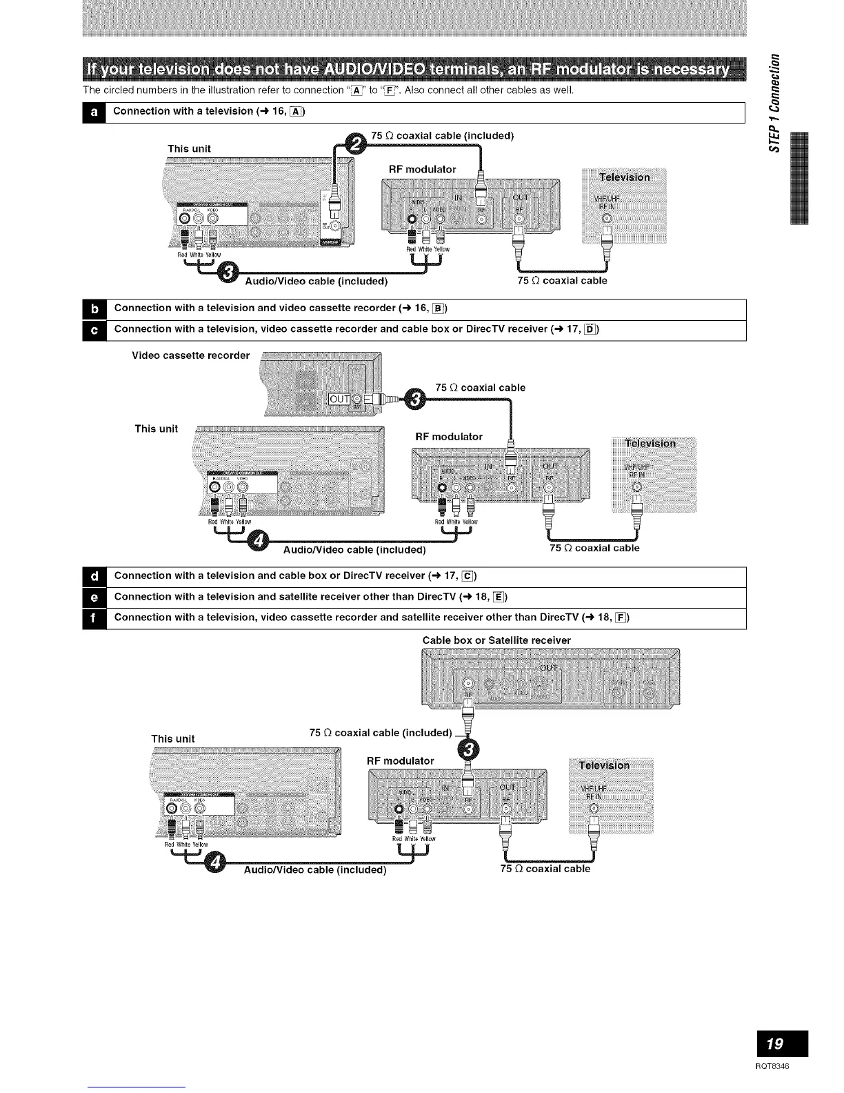 _r_ Connection with a television, video cassette recorder and satellite receiver other than DirecTV (4 18, [_)