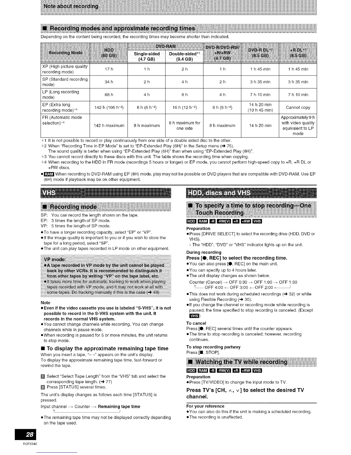 +3 You cannot record directly to these discs with this unit. The table shows the recording time when copying.