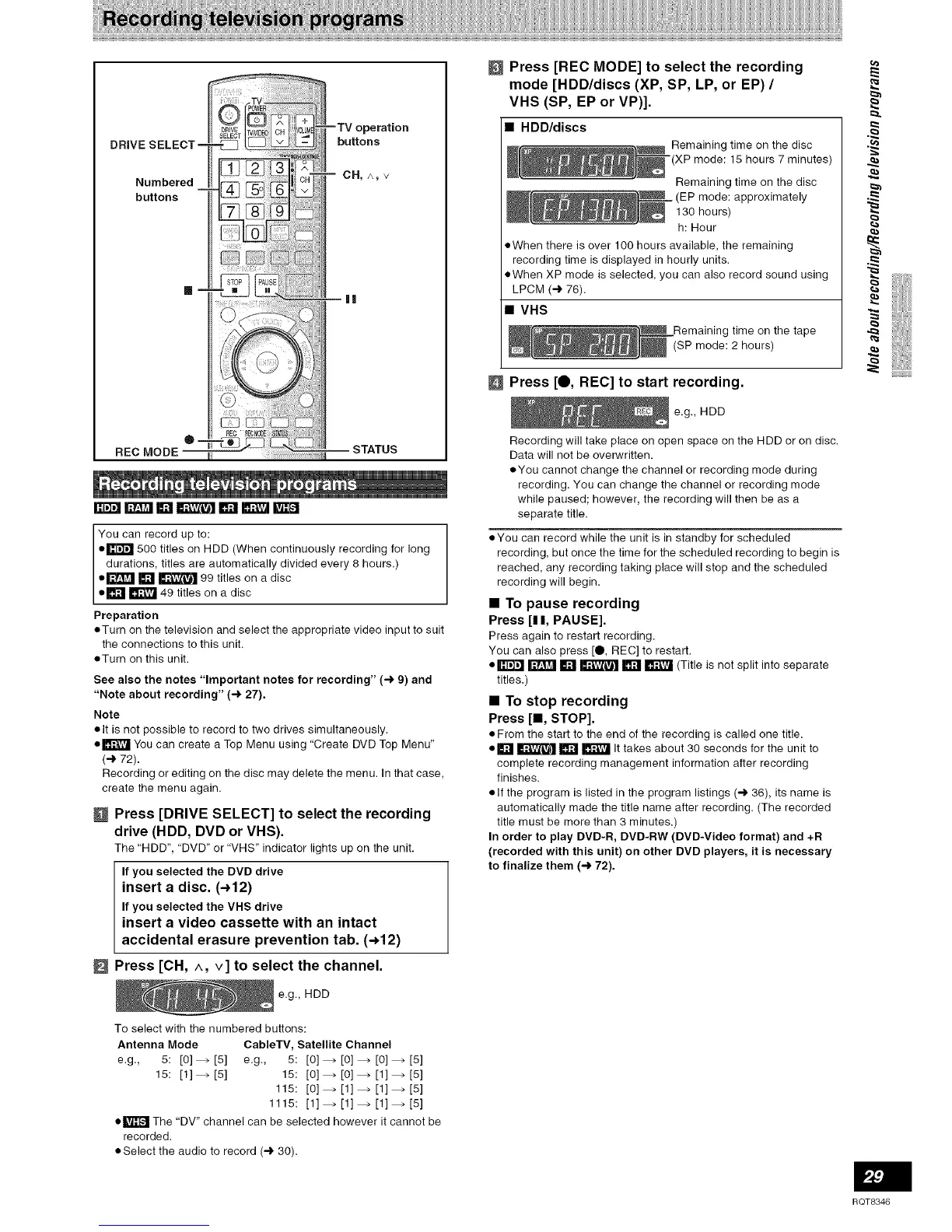mode [HDD/discs (XP, SP, LP, or EP) /