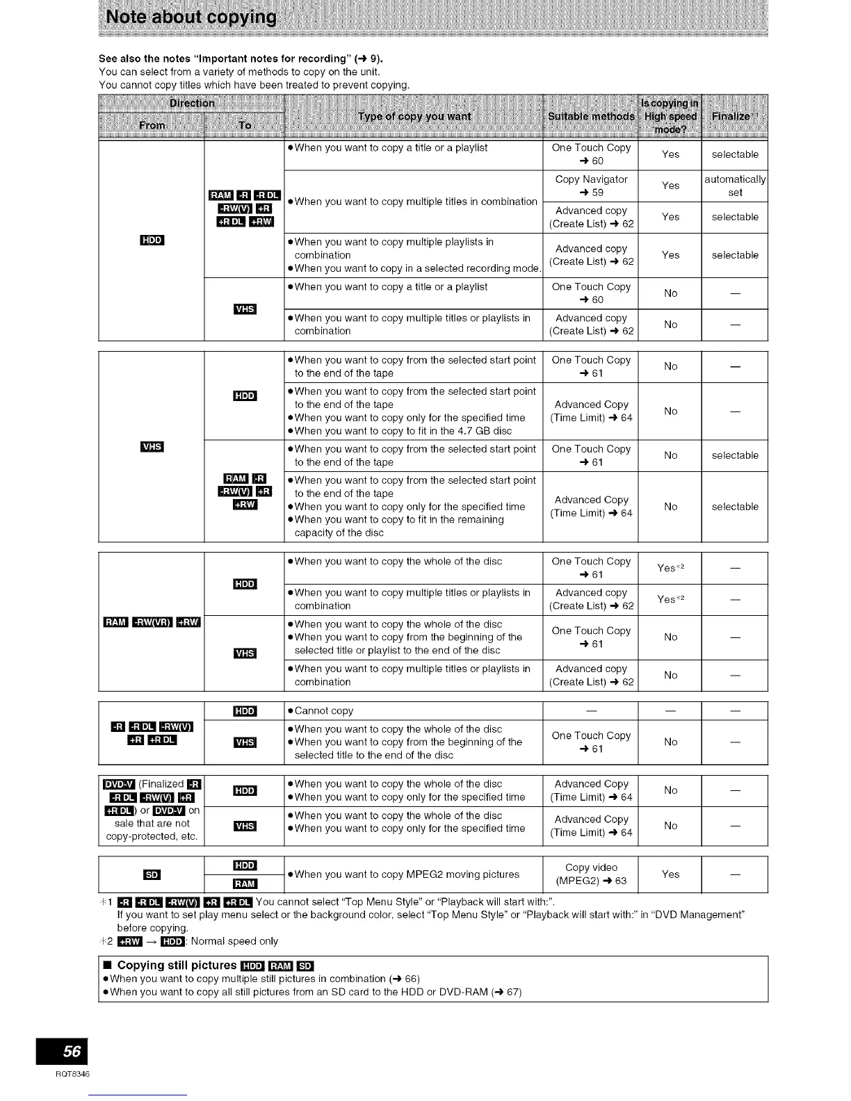 oWhen you want to copy all still pictures from an SD card to the HDD or DVD-RAM (4 67)