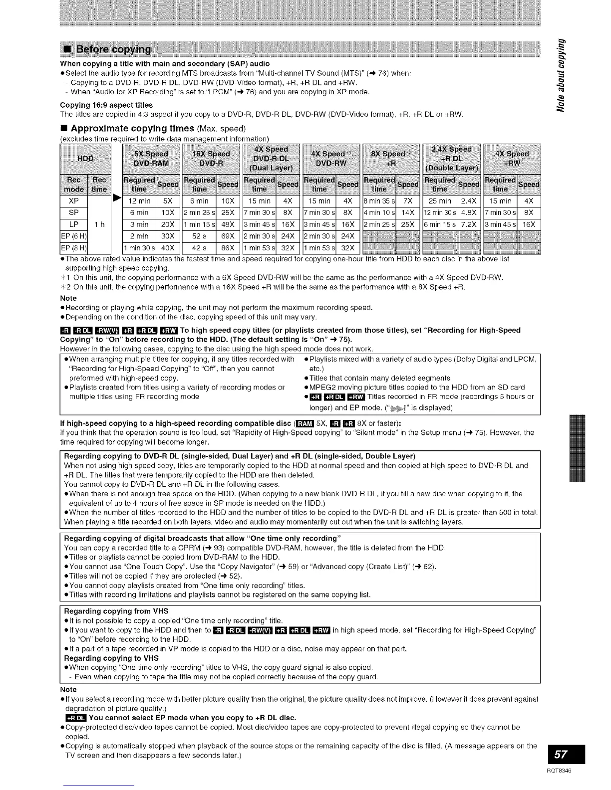 oThe above rated value indicates the fastest time and speed required for copying one-hour title from HDD to each disc in the above list