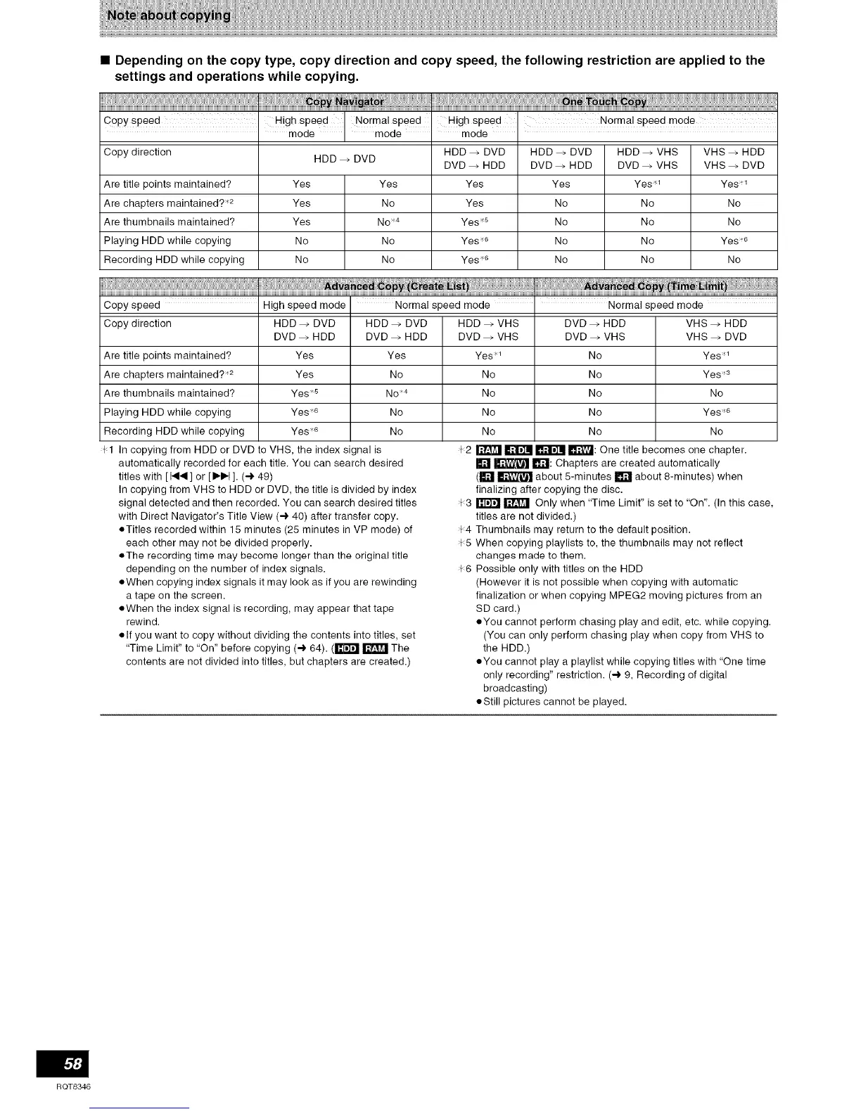 Copy direction HDD _ DVD HDD _ DVD HDD _ DVD HDD _ VHS VHS _ HDD
