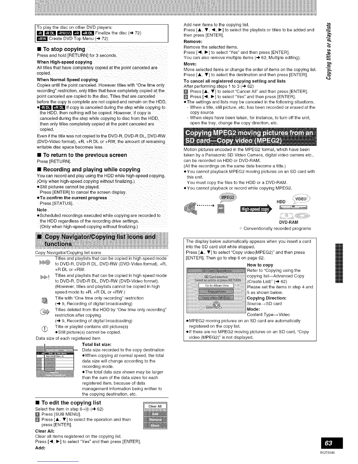 • You cannot playback or record while copying MPEG2.