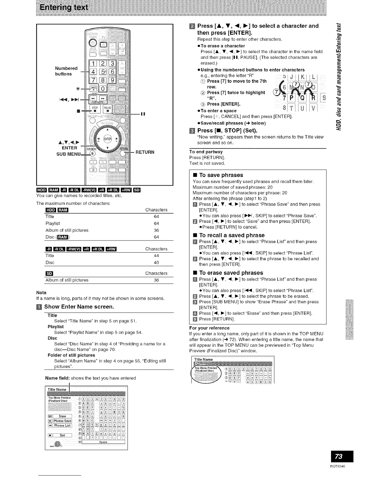 after finalization (4 72). When entering a title name, the name that