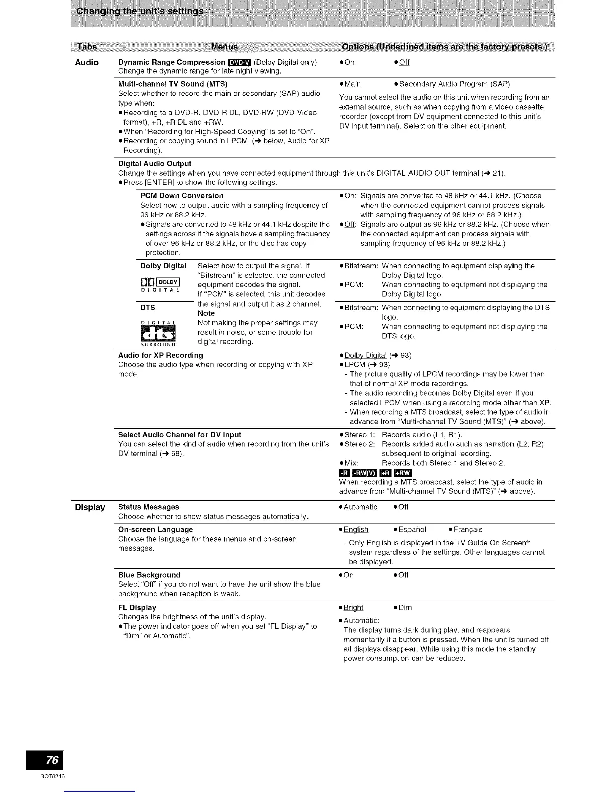 Change the settings when you have connected equipment through this unit's DIGITAL AUDIO OUT terminal (4 21).