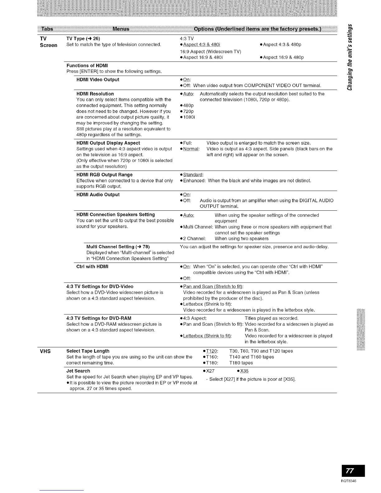 Screen Set to match the type of television connected, aAspect 4:3 & 480i