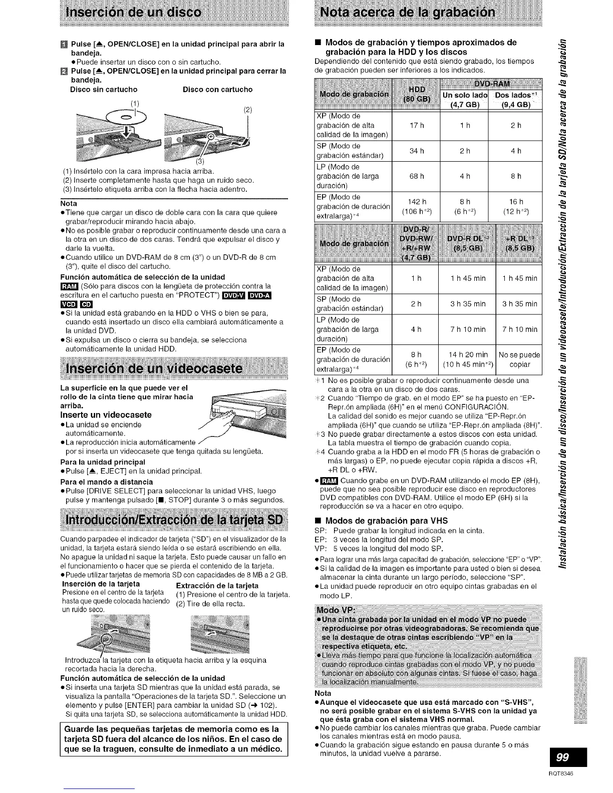 DVD compatibles con DVD-RAM. Utilice el mode EP (6H) si la
