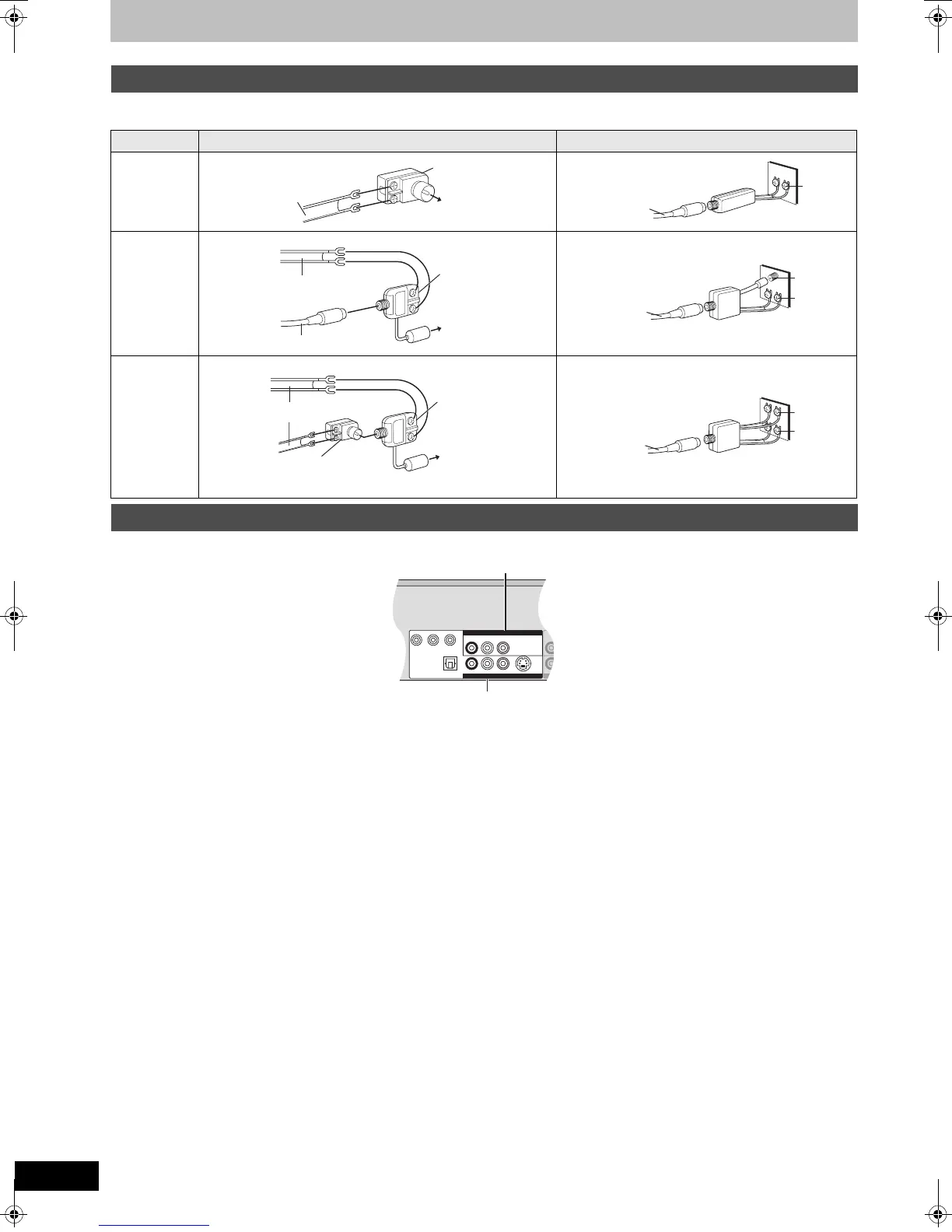 Use one of the following connections to suit the antenna lead to the unit’s RF IN terminal, and the 75 ≠ coaxial cable to the antenna terminals on