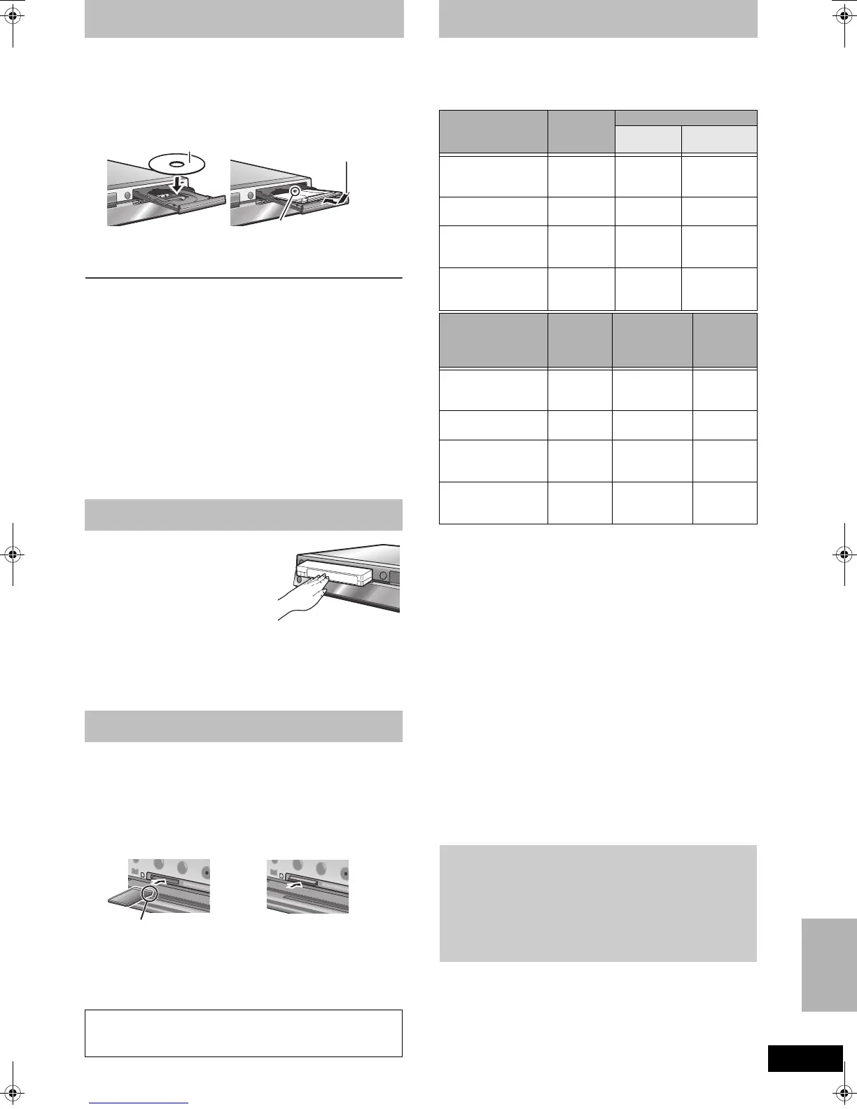 Instalación básica/Inserción de un disco/Inserción de un videocasete/Introducción/Extracción de la tarjeta SD/Nota acerca de la grabación