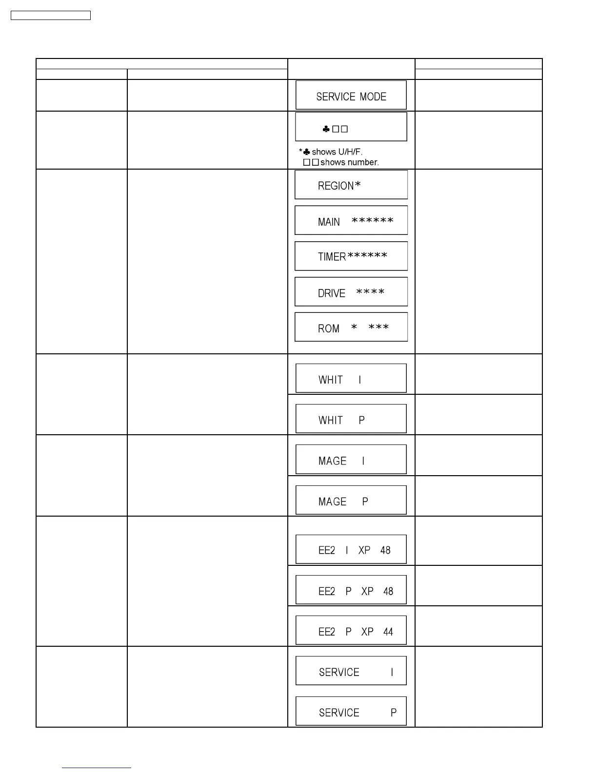 ROM Version Display Region code, MAIN firm version, TIMER firm