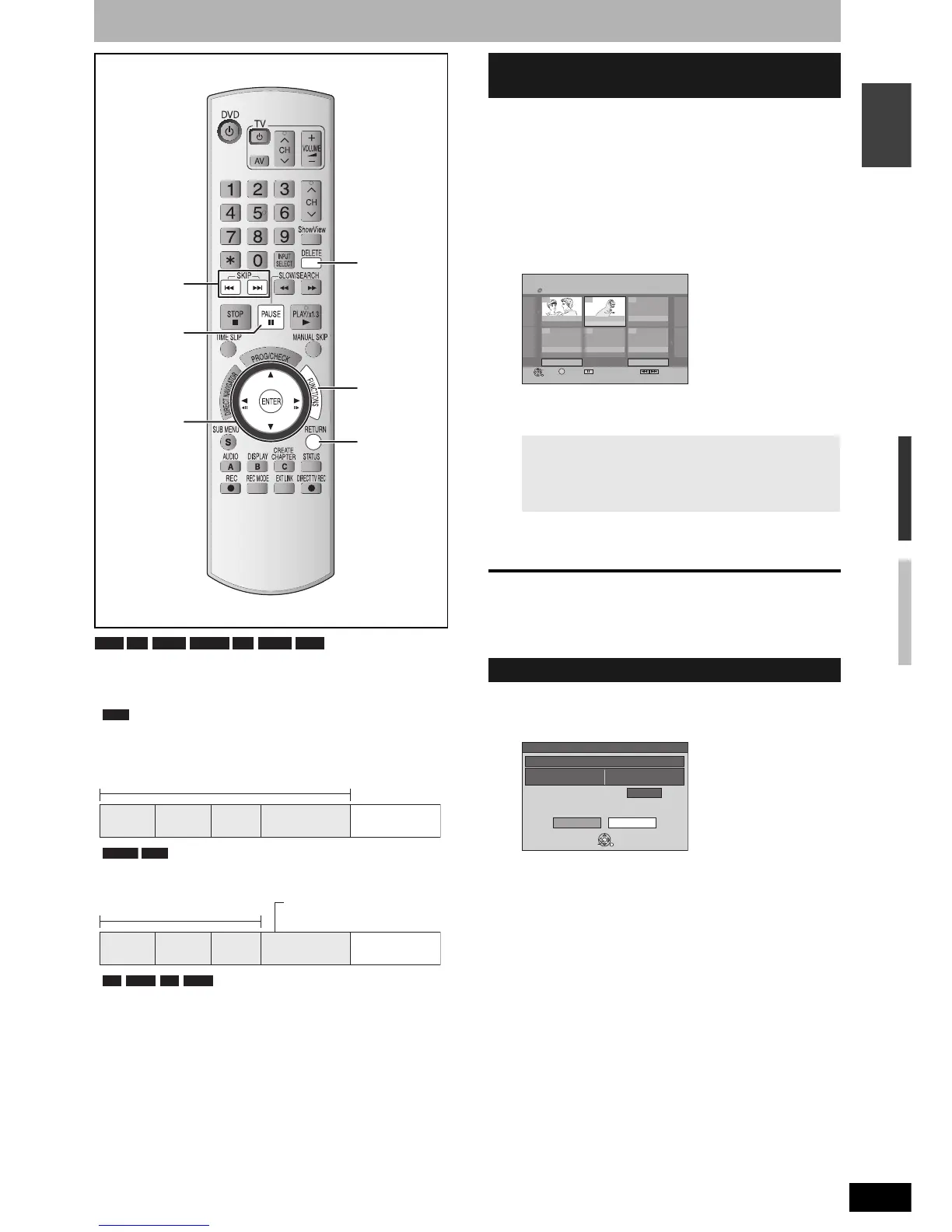 Using on-screen menus/FUNCTIONS window and Status message/Deleting titles
