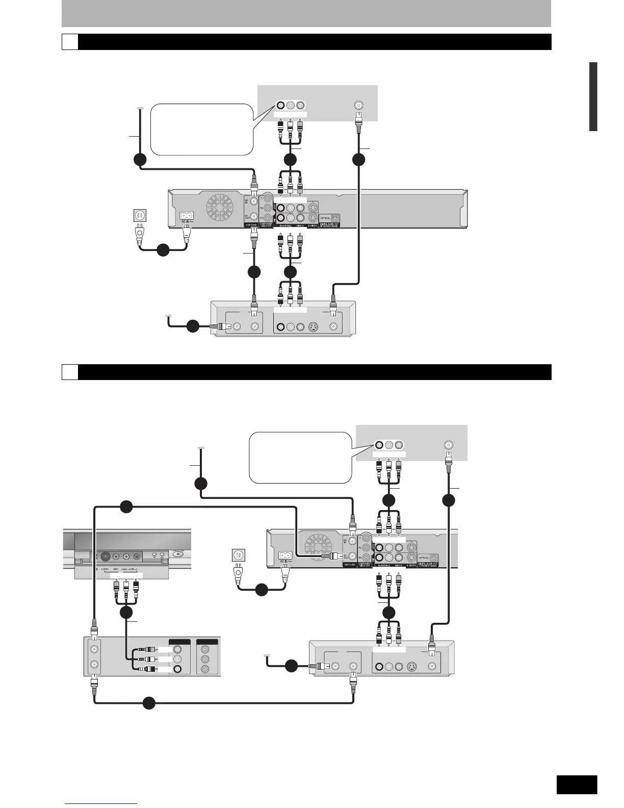 • The connection will allow the video cassette recorder to be used for playback and recording when this unit is turned off.