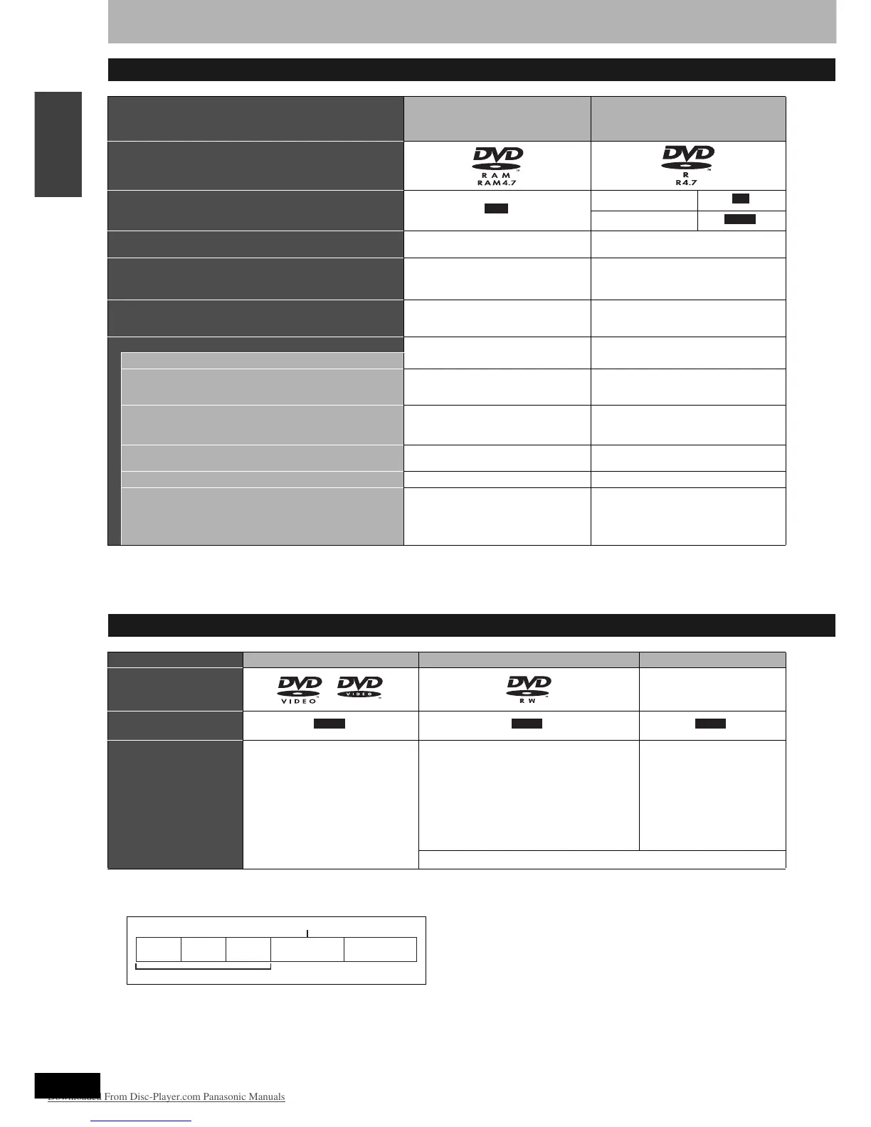 • We recommend using Panasonic discs. We recommend using DVD-RAM discs with cartridges to protect them from scratches and dirt.