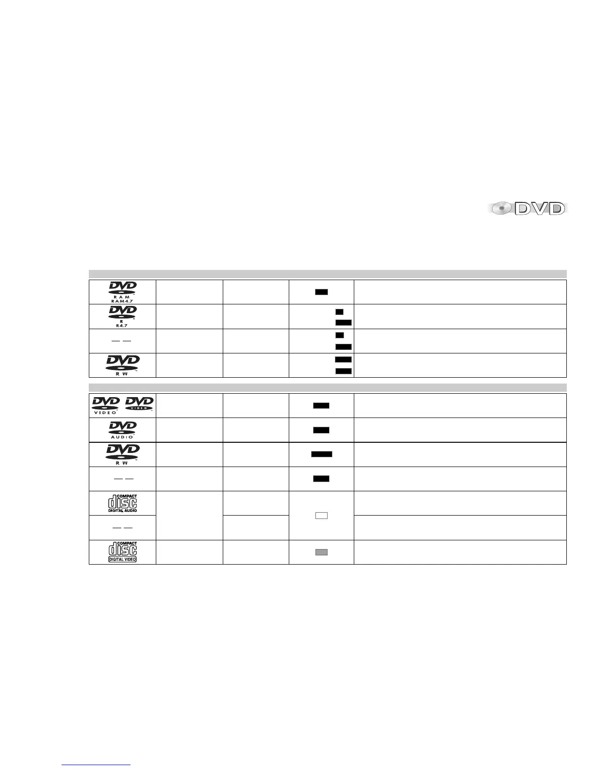 on the disc type, the regional code and the recording conditions, it may not always be possible to play the discs listed.