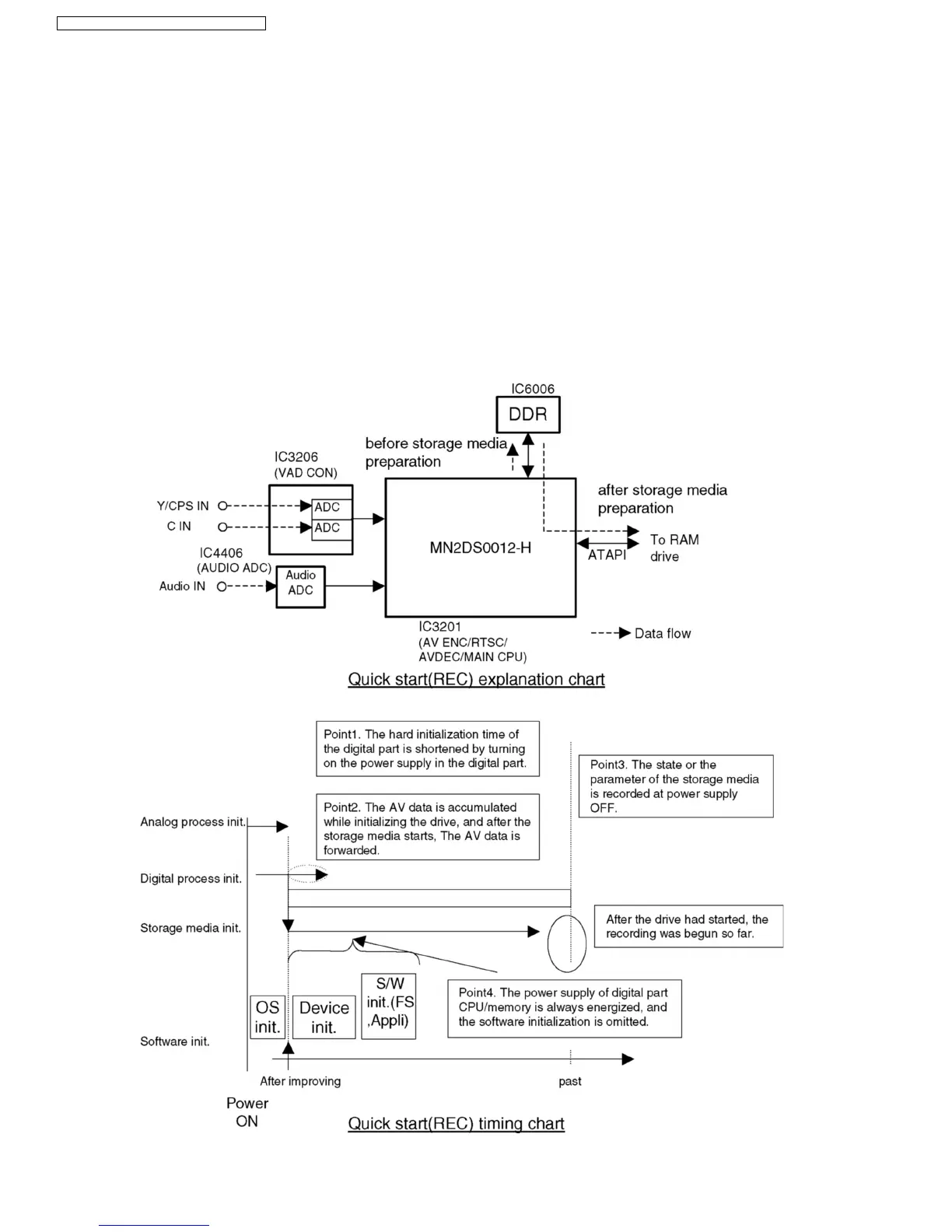In the power-off at Quick start, only power supplies for video IC, tuner and storage media are cut off.