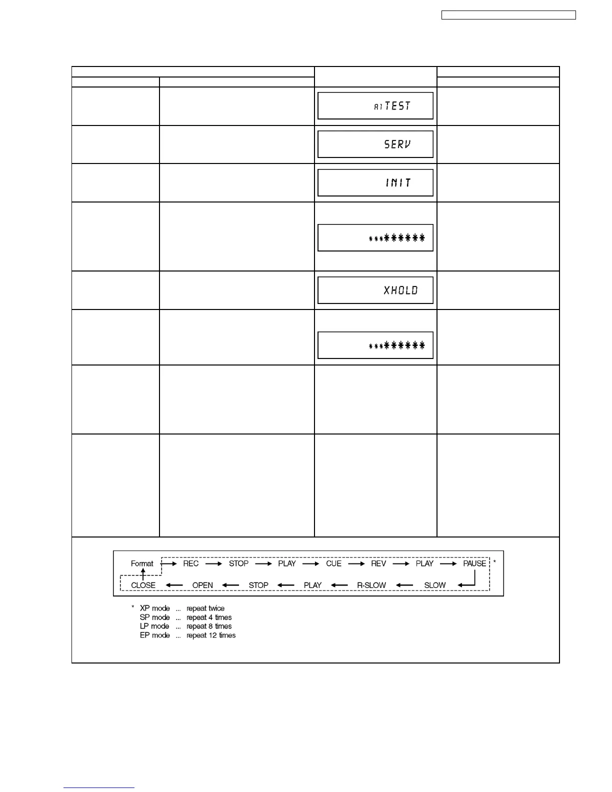 NTSC/PAL system select To switch PAL/ NTSC alternately. The display before execution