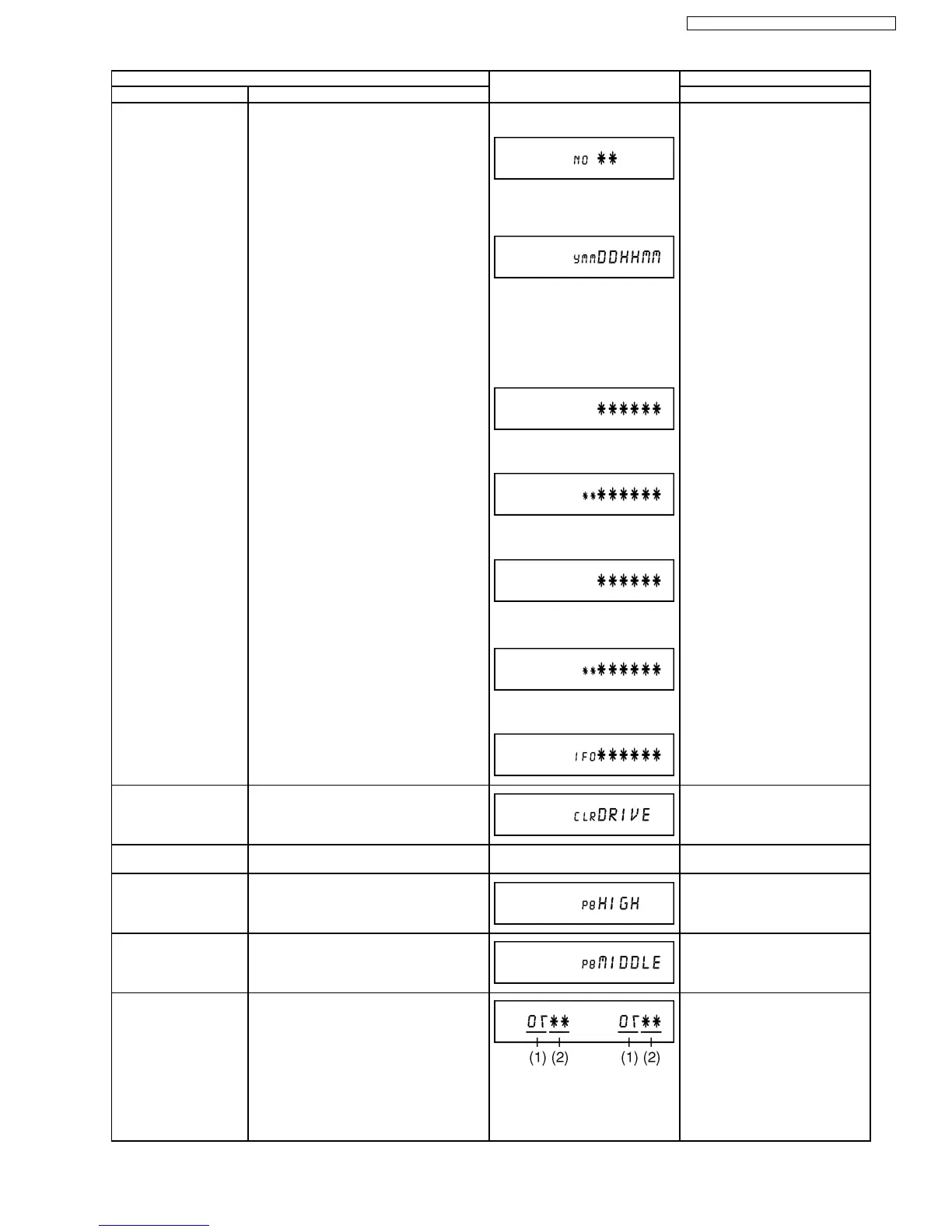 All segments are turned on. Press [5] [1] in service mode.
