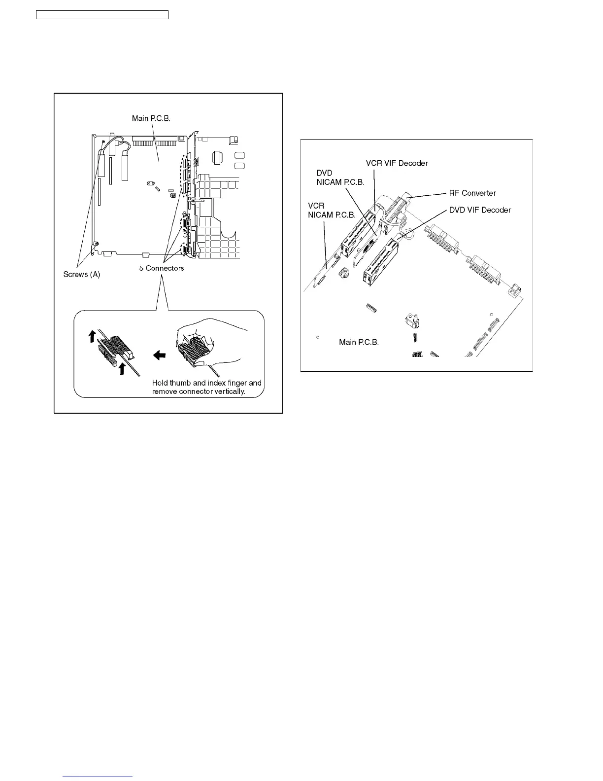 2. Remove 2 Screws (A), and remove Main P.C.B.