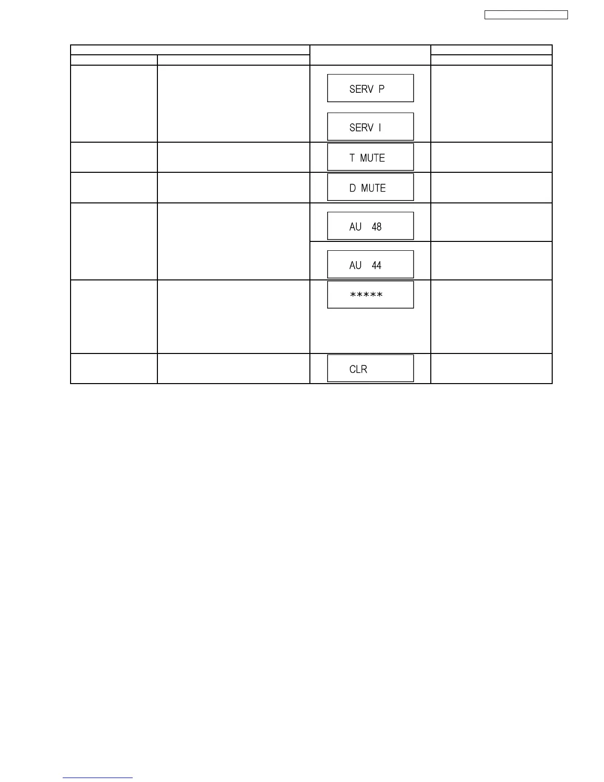 Initial mode (Audio 48kHz) Press [2] [3] in service mode.