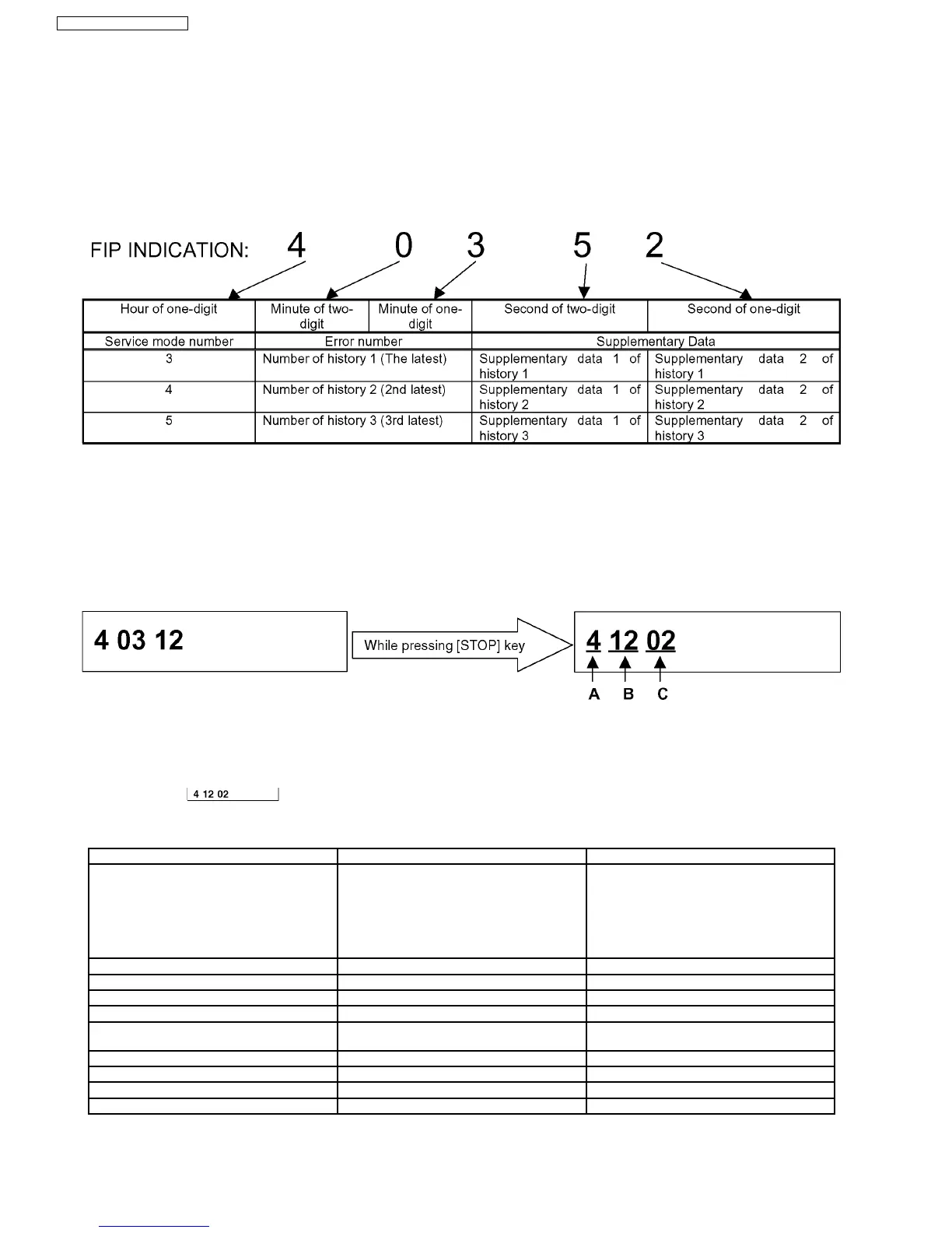 Both the Error numbers and its supplementary data of history 1, 2and 3 are indicated by selecting the Service mode 3, 4 and 5 as