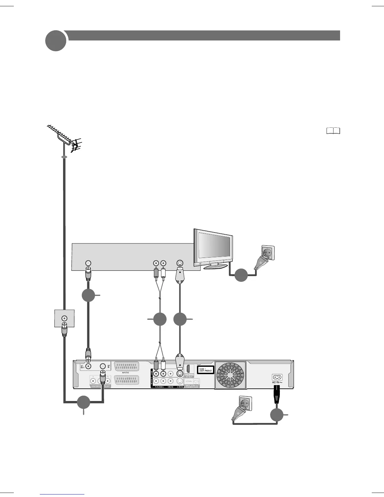1 Connect the aerial to RF IN (Aerial input) of the DVD Recorder.
