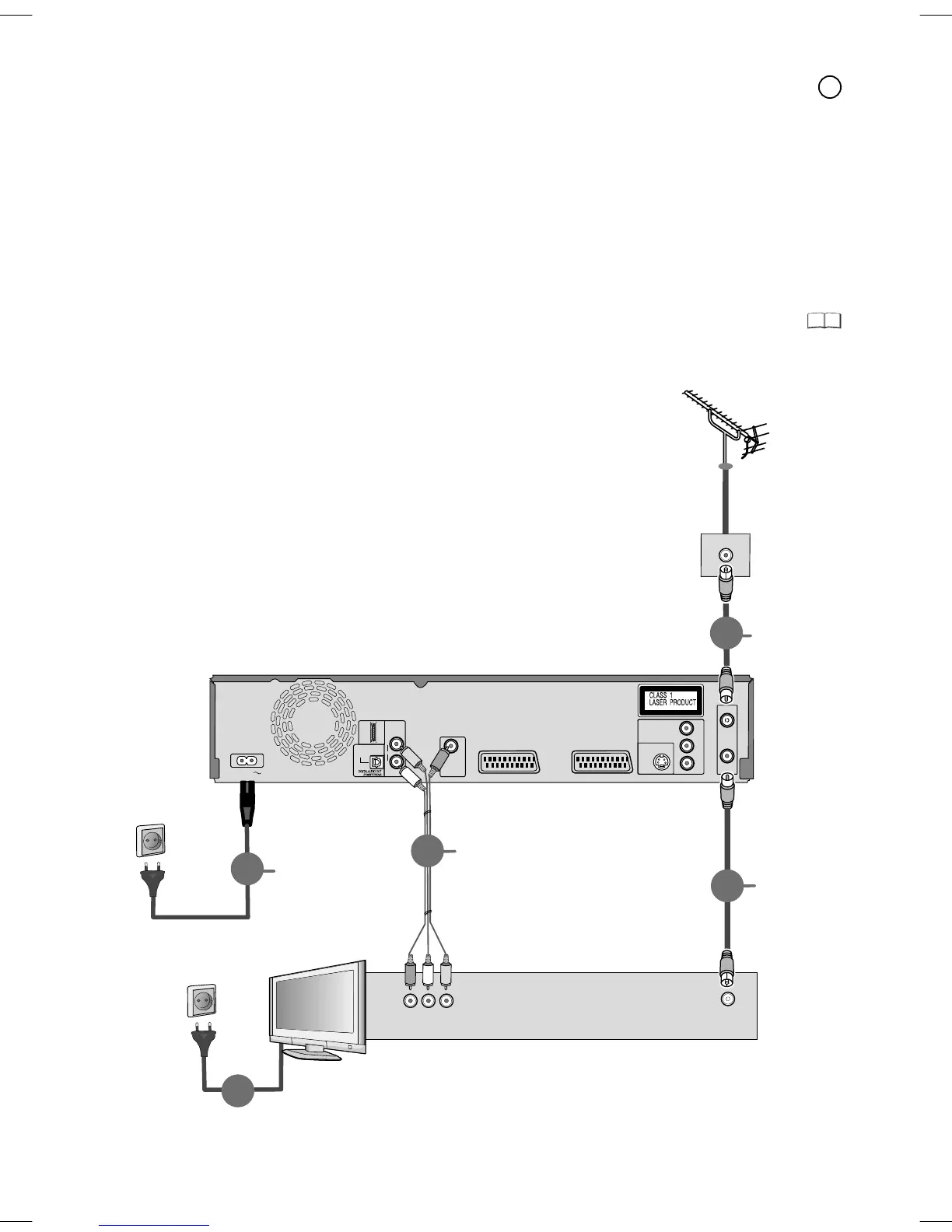 1 Connect the aerial to RF IN (Aerial input) of the DVD Recorder.