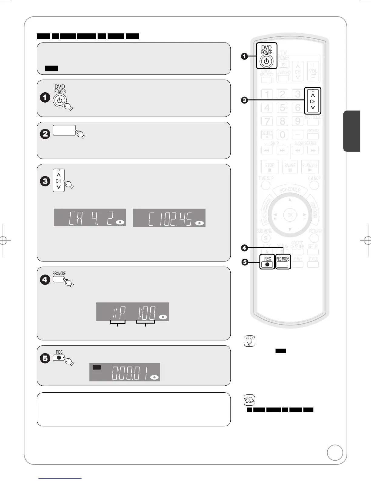 Refer to “Important Notes for Recording” (➔ 20) and “Advanced Recording” (➔ 21 to 23) for detailed information on
