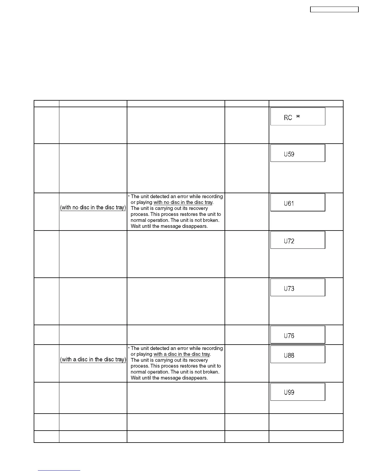 Error Code Diagnosis contents Description Monitor Display Automatic FL display